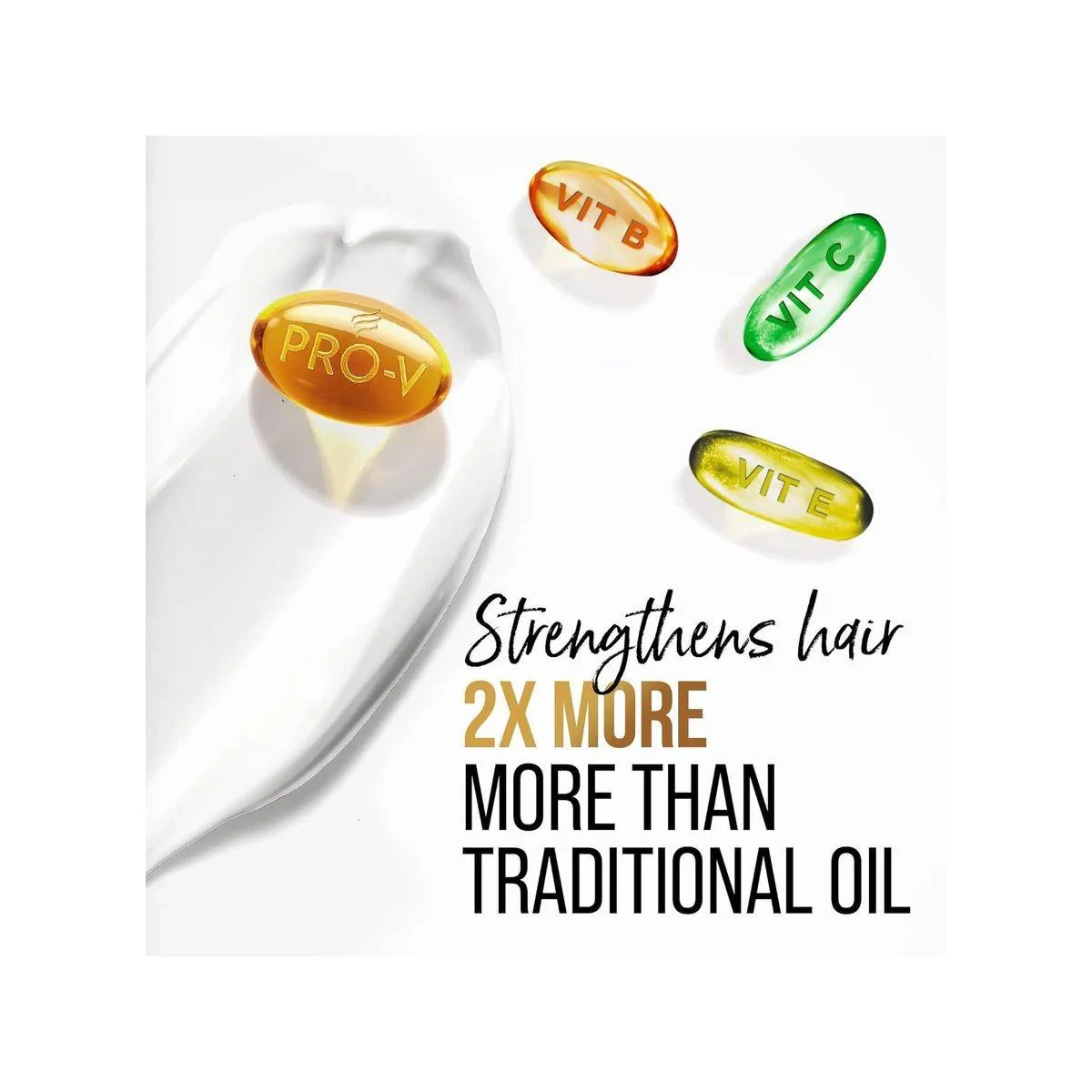 Pantene ProV Daily Care Oil Replacement is a nourishing leave-on cream enriched with vitamins B, C, and E. It strengthens hair 2x more than traditional oil, providing daily care for healthy, shiny hair. Features Leave-on cream Nourishing formula Contains Vitamin B, C & E Strengthens hair Vitamin B, Vitamin C, Vitamin E.Pantene: Experts in hair care solutions, known for nourishing and strengthening products.Spread The Appropriate Amount On Your Hands. Apply On Wet Or Dry Hair Starting From The Tip.For external use only. Avoid contact with eyes. Do not ingest.