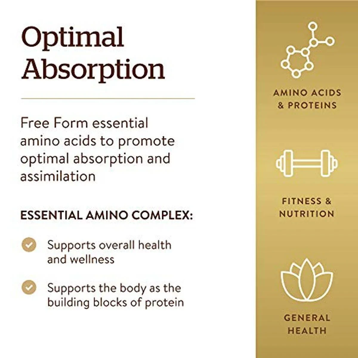 L-Histidine (Free Form) 75 mg, L-Isoleucine (Free Form) 75 mg, L-Leucine (Free Form) 75 mg, L-Lysine (as L-lysine HCl) (Free Form) 75 mg, L-Methionine (Free Form) 75 mg, L-Phenylalanine (Free Form) 75 mg, L-Threonine (Free Form) 75 mg, L-Valine (Free Form) 75 mg, Vegetable Cellulose, Microcrystalline Cellulose, Vegetable Magnesium Stearate.Solgar: Pioneers in nutritional supplements since 1947, known for high-quality vitamins and wellness products.As a dietary supplement for adults, take one (1) vegetable capsule, twice daily, between meals, or as directed by a healthcare practitioner.If pregnant, nursing, taking medications, or having any medical condition, consult your healthcare practitioner before use. Discontinue use and consult healthcare practitioner if adverse reactions occur. Keep out of reach of children. Store at room temperature. Do not use if outer bottle seal is missing or damaged.