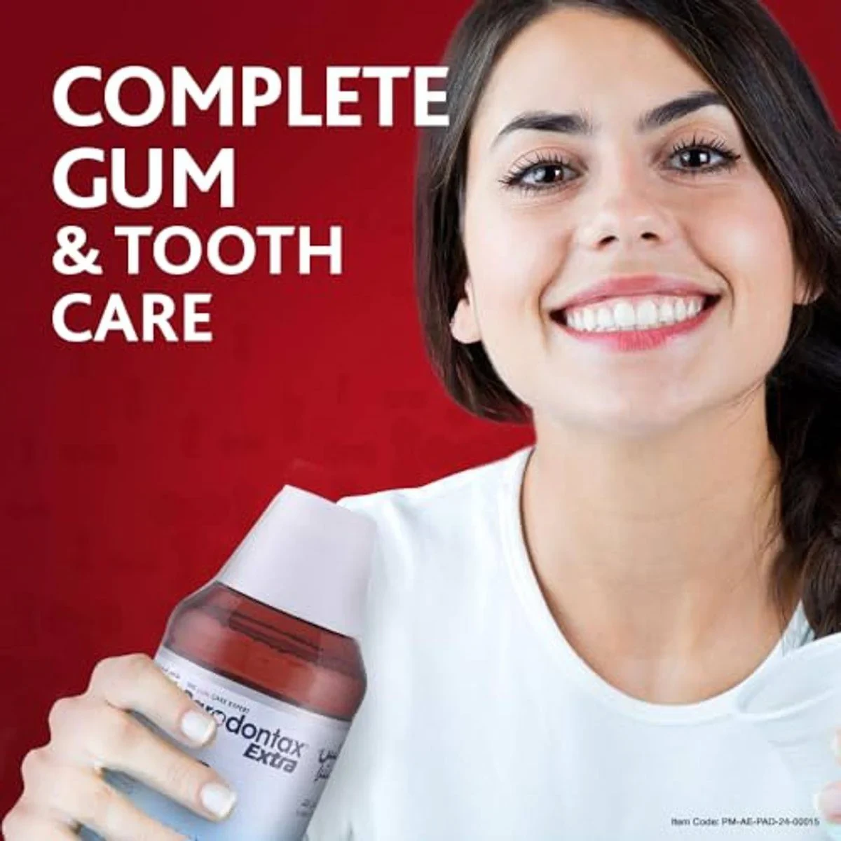 Parodontax Mouthwash Extra is an alcohol-free solution designed to protect against bleeding gums and provide complete gum and tooth care. Formulated with 0.2% chlorhexidine digluconate, it offers expert gum health support. Key Features Alcohol-free mouthwash Protective shield against bleeding gums Complete gum and tooth care From the experts of gum health 0.2% Chlorhexidine Digluconate.Experts in gum health, Parodontax offers complete care for gums and teeth, specializing in alcohol-free solutions.Use 0.2% mouthwash chlorhexidine digluconate as directed.Not suitable for children under 12 years.