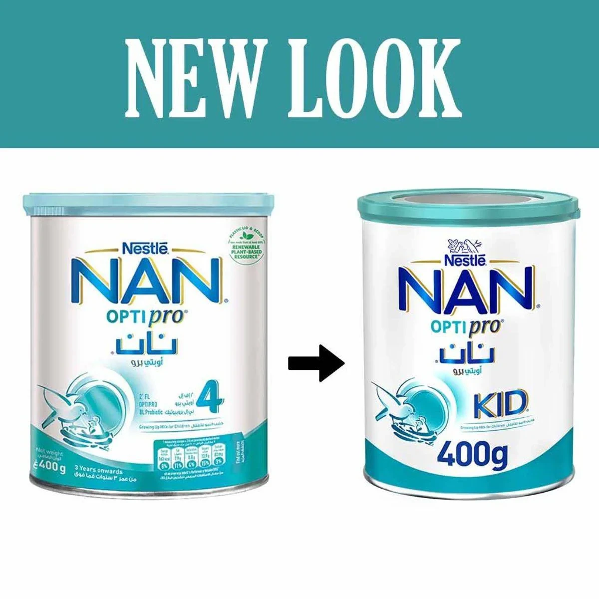 NAN Optipro Growing Up Formula Stage 4 is designed for children aged 3 years and above, providing essential nutrients for growth and development. It includes OPTIPRO for high-quality protein, probiotics for digestive health, and essential vitamins and minerals. Ideal for supporting a child's immune system and overall health. Features Optipro: Provides high-quality protein for growth Dentapro: Includes protective probiotics to prevent caries Lipid Smart: Special fat blend supports brain development 5-MO Complex: Supports immunity with five milk oligosaccharides Irons, Zinc & Vitamins: Supports natural defenses and immunity BL Probiotics: Protects against harmful bacteria No Added Sucrose: Contains milk with no added sugar DHA & ARA: Essential for brain and eye development Skimmed Dried Cow'S Milk, Maltodextrin, Whey Permeate, Whey Protein (From Cow Milk), Vegetable Oils (Palm Olein, Low Erucic Rapeseed Oil, Sunflower Oil), Emulsifier (Soy Lecithin), Glucose Syrup, 2'-Fucosyl-D-Lactose, Fish Oil (From Tuna Fish), Bifidus Culture, Minerals & Vitamins. Contains Milk, Soy, And Fish.Nestle: A global leader in nutrition, health, and wellness, known for quality and innovation in food products.Use As Directed By A Healthcare Professional.Use product within 3 weeks of opening. Discard unused formula within 1 hour after feeding begins. Do not add extra powder or under/over dilute unless directed by a healthcare professional. Improper preparation can lead to illness.