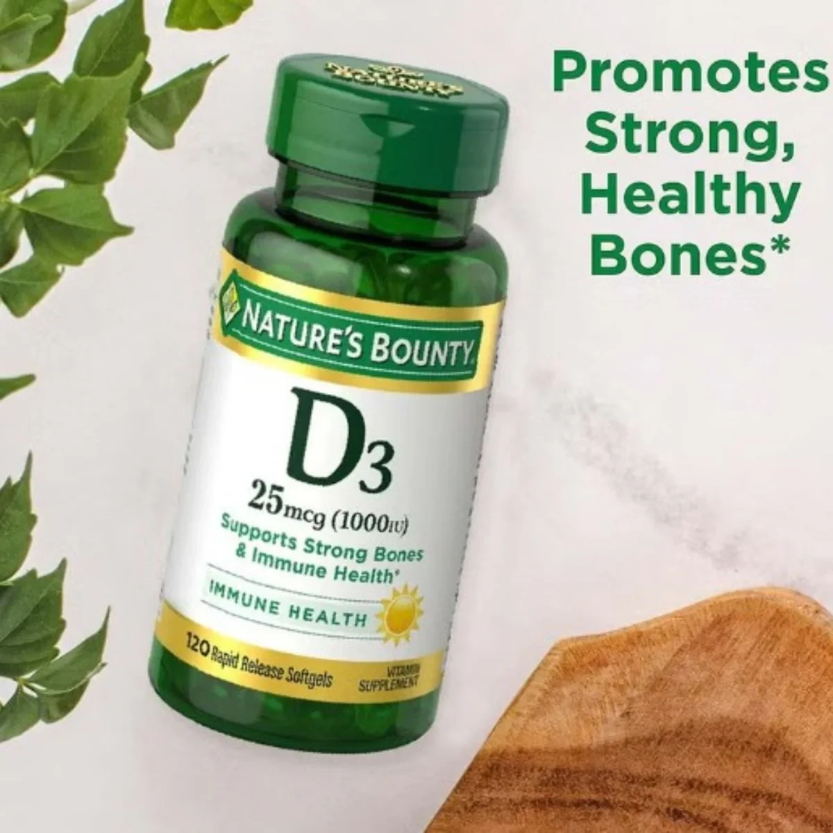 Natures Bounty Vitamin D 1000IU 120 SoftgelVitamin D3 (Cholecalciferol)This bottle contains 120 softgels, each with 1000IU of Vitamin D, which is crucial for maintaining strong bones and a healthy immune system.As labelled or as directed by healthcare practionerDo not exceed the recommended dose or as advised by health care practioner