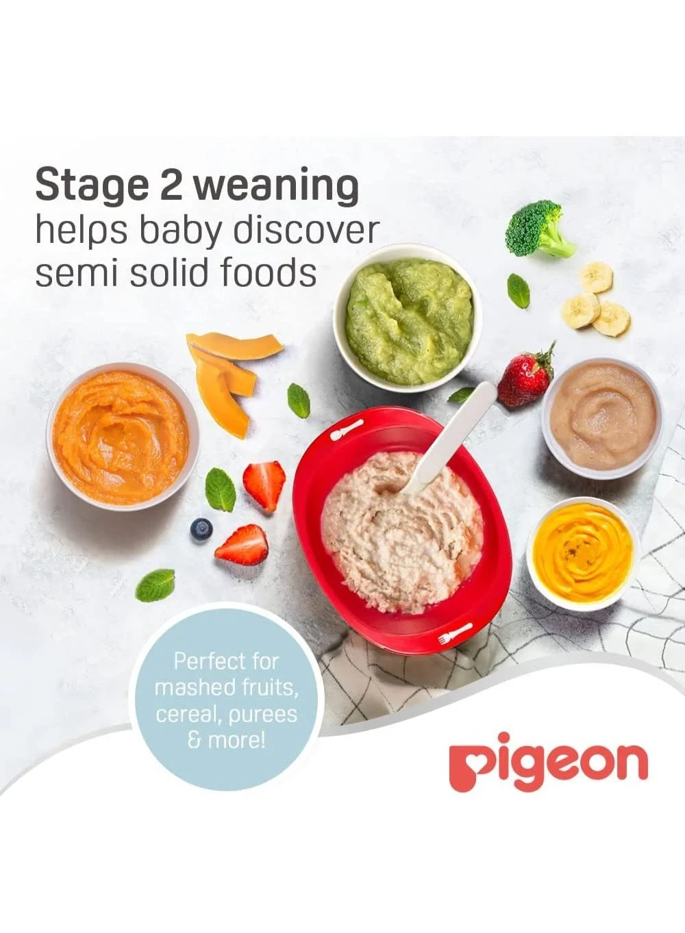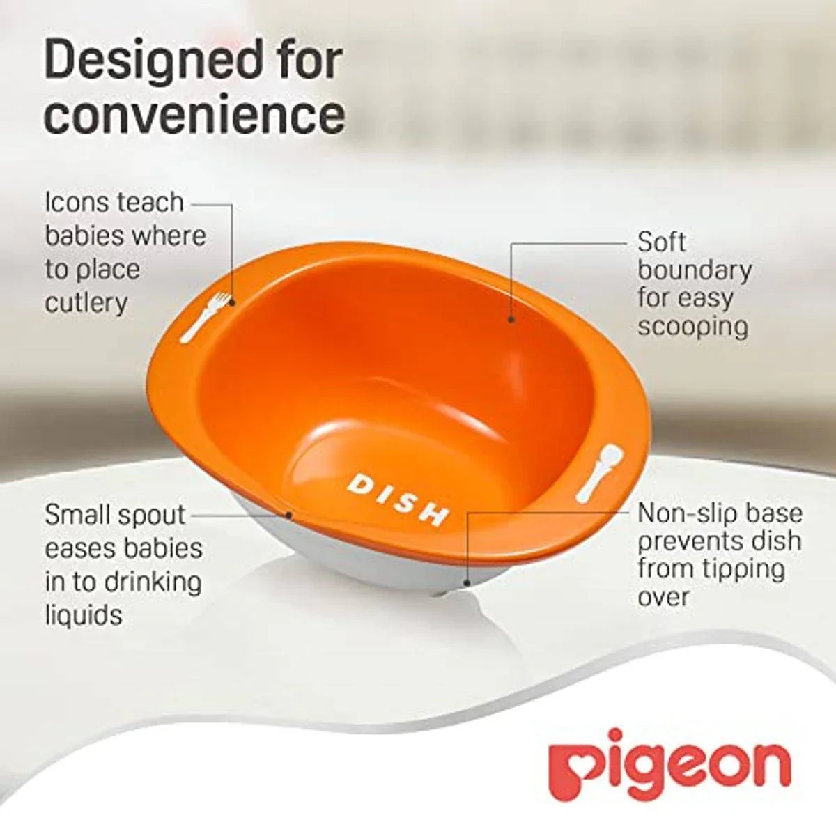 The Pigeon Do It Myself Stage 2 Learning Dish is designed for babies 12 months and older. It encourages self-feeding and develops motor skills with its ergonomic design. The dish features a non-slip base and is BPA-free, ensuring a safe and practical feeding experience. Key Features Encourages self-feeding Promotes motor skills development Anti-slip base for stability BPA free materials Suitable for 12+ months Soft boundary design Ergonomic design Non-toxic feeding experience Key Materials: Dish: Food grade Polypropylene (PP) plastic (BPA free).Experts in baby care essentials and innovative feeding solutions.Use to feed solid foods. Designed to help the child scoop food without spilling. Clean thoroughly after each use.Inspect for cracks or damage before use. Do not microwave. Use under adult supervision.