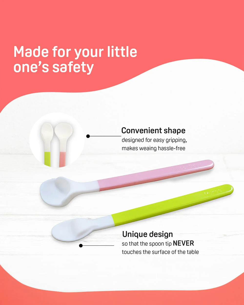 The Pigeon Feeding Spoon Set is designed to support your baby's transition to self-feeding. Made from BPA-free materials, these spoons are safe and gentle on delicate gums. Ideal for use with purees and juices, they feature a unique design to prevent the spoon tip from touching surfaces, ensuring hygiene. Suitable for babies aged 6 months and up. Key Features Encourages healthy mealtime habits Embraces sensory development of sight, smell & touch Improved hand-mouth coordination Understanding of table posture & eye contact during meals Made for your little one's safety Convenient shape designed for easy gripping Unique design so that the spoon tip never touches the surface of the table Supporting little ones learning to self-feed Offering your little one's enjoyable meal times Stopper prevents the spoon from going too far into baby's mouth Key Materials: Spoons: Food grade Polypropylene (PP) or Silicone (soft tips); Plastic/PP handles.Pigeon: Experts in baby care essentials, known for innovative and safe feeding solutions.Use The Spoon For Purees And Soft Tips For Juice And Soups. Suitable For Babies 6 Months And Older.Not Suitable For Children Under 6 Months.