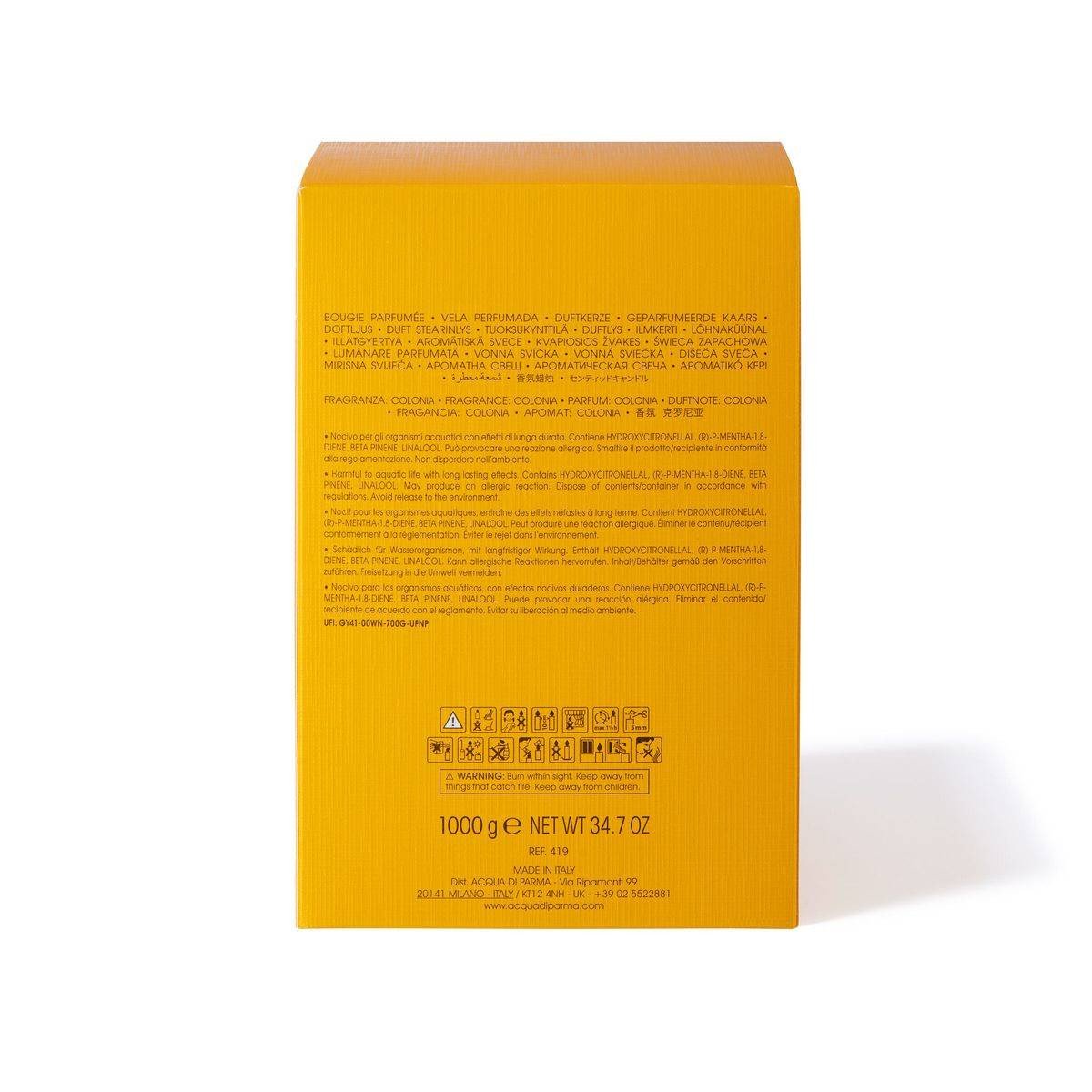 This luxury scented candle embodies Italian sophistication with its iconic Colonia fragrance. Handcrafted for optimal fragrance diffusion, it offers up to 60 hours of burning time. Key Features Iconic Colonia scent Handcrafted using artisanal techniques Specially-weaved wick for optimal fragrance diffusion Burning time up to 60 hours Large 1000g size Made in Italy Vegetable Blend Wax, Fragrance (Parfum), Limonene, Linalool, Citral, Coumarin, Geraniol, Citronellol, Hydroxycitronellal, Alpha-Isomethyl Ionone, Evernia Prunastri (Oakmoss) Extract, Benzyl Alcohol, Benzyl Benzoate, Benzyl Salicylate, Cinnamyl Alcohol, Eugenol, Isoeugenol.This luxury scented candle embodies Italian sophistication with its iconic Colonia fragrance. Handcrafted for optimal fragrance diffusion, it offers up to 60 hours of burning time.Trim Wick To 1/4 Inch Before Each Use. Discontinue Use When 1/2 Inch Of Wax Remains.Harmful To Aquatic Life With Long-Lasting Effects. Contains Hydroxycitronellal, (R)-P-Mentha-1,8-Diene, Betapinene, Linalool. May Produce An Allergic Reaction. Dispose Of Contents/Container In Accordance With Regulations. Avoid Release To The Environment.