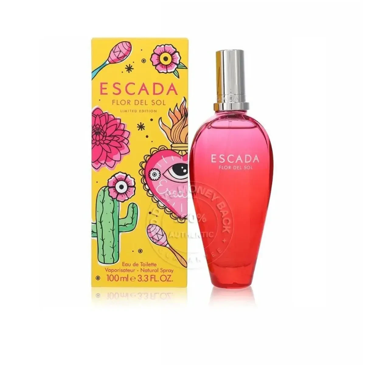 Escada Flor Del Sol Limited Edition is a vibrant floral fruity fragrance for women. It features top notes of Grenadine, Tequila, and Orange, with a heart of Dahlia and a base of Sandalwood. This scent celebrates summer holidays, freedom, and friendship, evoking a sunny getaway. Key Features Floral Fruity fragrance Top notes of Grenadine, Tequila, and Orange Heart note of Dahlia Base note of Sandalwood Celebrates summer holidays and friendship Available in 100 ml bottle Fragrance Notes: Grenadine, Orange, Dahlia, Sandalwood.Escada is renowned for its vibrant and refreshing fragrances, capturing the essence of femininity and grace.Spray onto pulse points from a distance of 5-7 inches. Avoid rubbing.Flammable. For external use only. Keep away from heat, sparks, and open flame.