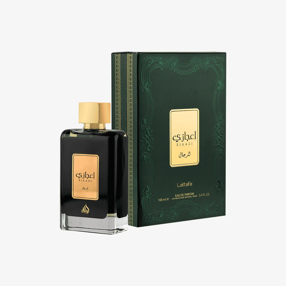Lattafa Ejaazi is a unisex Eau de Parfum featuring a blend of citrus, amber, and woodsy notes. Ideal for those seeking a versatile and long-lasting fragrance. Key Features Unisex fragrance Amber and woody notes Long-lasting scent Suitable for cool weather Alcohol Denat., Parfum, Water, Limonene, Linalool.Lattafa: Renowned for crafting captivating unisex fragrances blending oriental and modern notes.Apply To Pulse Points Such As Wrists, Neck, And Behind Ears.Flammable. For external use only. Keep away from heat, sparks, and open flame.