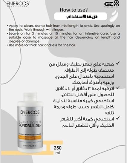 Enercos Professional Smart System Bond Builder Hair Bond Protector is designed to protect and strengthen hair fibers. Ideal for all hair types, it nourishes and hydrates, enhancing hair vitality and shine. Perfect for use between technical services, it helps prevent breakage and restore elasticity. Features Protects and strengthens hair fibers Nourishes and hydrates hair Boosts shine and enhances vitality Prevents breakage and restores elasticity Suitable for damaged or chemically treated hair Free from parabens and sulphates Key Ingredients: Water/Conditioning Base, Enercos Protein Complex, Bond-Building Agents, Conditioning Polymers.Innovative hair care solutions for professional and home use, specializing in bond building technology.Use No.3 after No.0. Apply a small amount from roots to ends and leave on for 10 minutes. Rinse off thoroughly.For Professional Use Only.