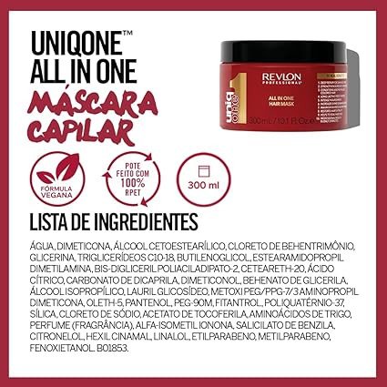 Aqua/Water/Eau, Dimethicone, Cetearyl Alcohol, Behentrimonium Chloride, Glycerin, Cetrimonium Chloride, Panthenol, Quaternium-80, Amodimethicone, Cetrimonium Methosulfate, Parfum (Fragrance), Trideceth-6, Propylene Glycol, Citric Acid, Trideceth-6, Sodium Benzoate, Potassium Sorbate, Lactic Acid, Benzophenone-4, Butylphenyl Methylpropional, Linalool, Limonene, Hexyl Cinnamal, Linalool, Citronellol, Butylphenyl Methylpropional, Linalool, Benzyl Salicylate, Alpha-Isomethyl Ionone, Citronellol, Geraniol, Limonene, Benzyl Alcohol, Benzyl Benzoate, Benzyl Salicylate, Parfum (Fragrance).Revlon: Innovators in professional hair care, offering solutions for all hair types with a focus on quality and performance.Distribute over damp hair from mids to ends and leave in for 3 minutes, then rinse off.Avoid contact with eyes. If product gets into eyes, flush with water. Do not swallow. For external use only. If swallowed, seek medical advice. Keep out of reach of children. For sensitive skin, do a patch test before use. If irritation or adverse reactions occur, discontinue use and consult a doctor. May contain perfume or essential oils that could cause allergic reactions. Store in a cool, dry place away from direct sunlight. Do not use after expiry date. Use only as directed.