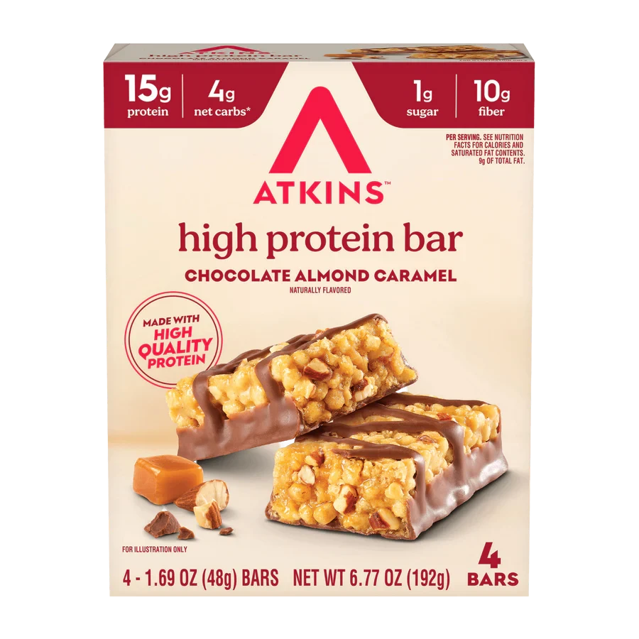 The Atkins Meal Protein Bar in Chocolate Almond Caramel flavor is a delicious, low-carb snack. Packed with 15g of protein and only 3g of net carbs, it's perfect for those on a ketogenic diet. This gluten-free bar is made with real almond butter and contains no artificial colors or flavors, making it a healthy choice for on-the-go nutrition. Key Features