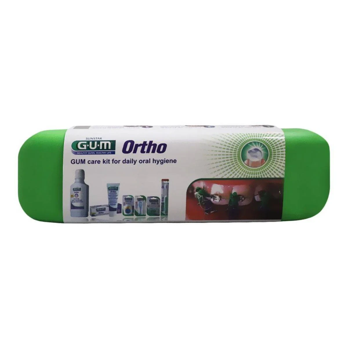 The Gum Ortho Gum Care Orthodontic Kit is designed for daily oral hygiene, featuring a 3-step system to healthier teeth and gums. Ideal for orthodontic care, it includes specific products for optimum plaque removal. Key Features 3-Step System to healthier teeth and gums Includes toothbrush, dental floss, and more Optimum plaque removal Suitable for orthodontic care Set Components: Orthodontic Toothbrush (V Trim); Proxabrush/Interdental Cleaner; Orthodontic Wax; Floss Threaders; Mirror; Travel Case.Gum: Leading oral care brand known for innovative dental hygiene solutions.Use Dental Floss Daily For Optimum Plaque Removal.Keep small parts out of reach of children.