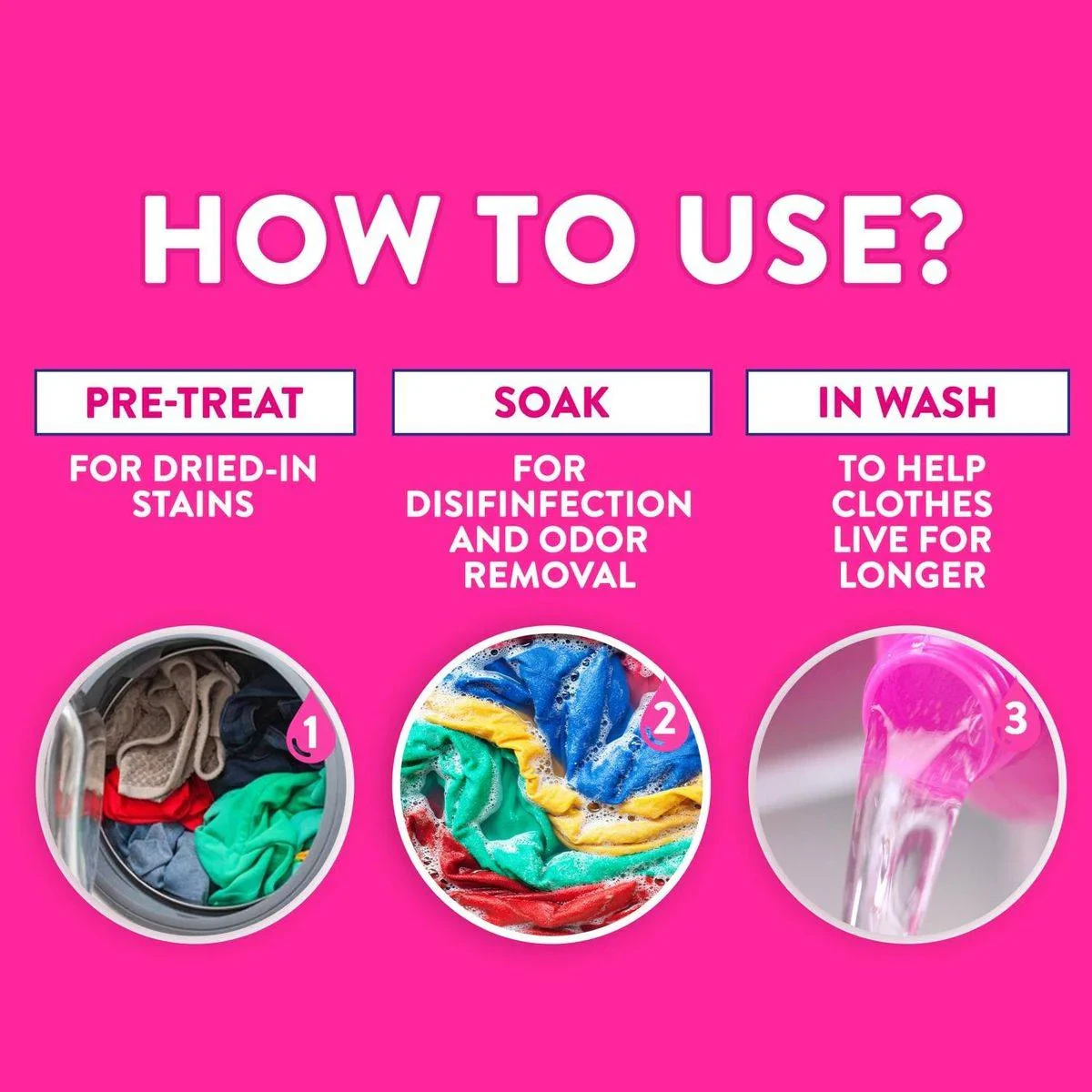 Vanish Stain Remover is a powerful solution for white fabrics, eliminating stains and whitening without chlorine bleach. Safe for fabrics, it ensures hygiene by removing 99.9% of germs. Key Features Eliminates 99.9% of germs 3x better than bleach Removes stains Whitens whites Safe on fabric Without chlorine bleach Oxygen-based bleaching agent (Hydrogen Peroxide), <5% Non-ionic surfactants, Anionic surfactants, Perfumes.Vanish is a global leader in fabric stain removal products. This is a liquid stain remover specifically for white fabrics.Pre-Treat: Pour directly onto stain. Soaking/Washing: Add the recommended dosage (check pack) to your main wash or presoak solution.Caution: Causes serious eye irritation. Keep out of reach of children. If swallowed, call a doctor.