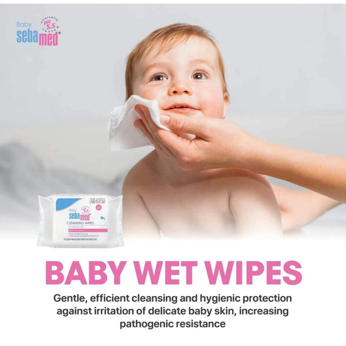 Sebamed Baby Cleansing Wipes are designed for gentle and efficient cleansing of delicate baby skin. Infused with panthenol, they provide extra-soft care and help soothe the skin. Ideal for daily use, these wipes offer hygienic protection against irritation and increase pathogenic resistance. Features Gentle cleansing for delicate baby skin Contains Panthenol and Chamomile Extract Extra-soft care formula Helps soothe and protect skin pH 5.5 for skin protection Panthenol, Chamomile ExtractExperts in baby care essentials and dermatologically tested products.Use As Needed For Cleansing Delicate Baby Skin.For external use only. Discontinue use if irritation occurs. Do not flush.