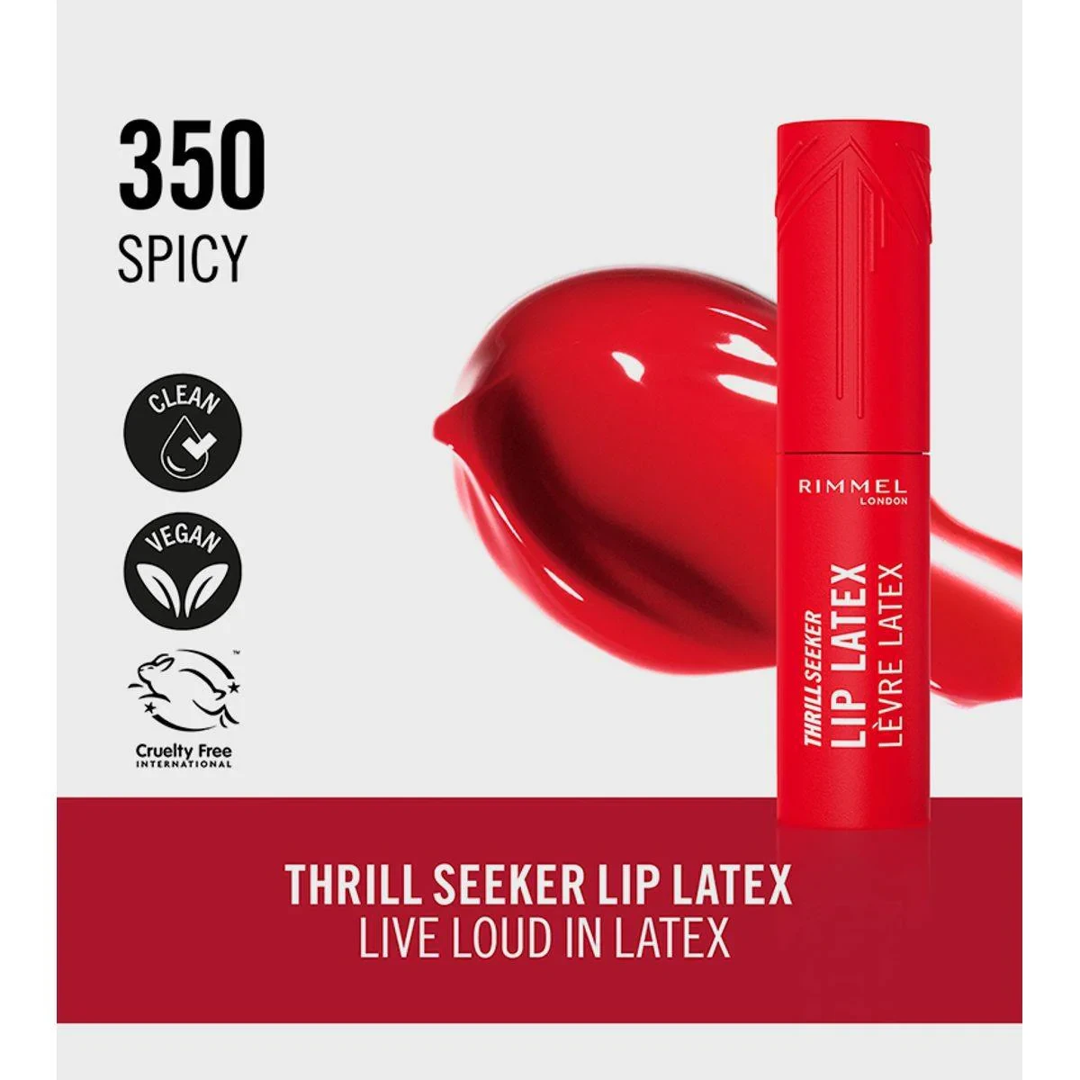 Rimmel Thrill Seeker Lip Latex offers extreme 3D latex shine with unstoppable color in one swipe. Infused with aloe vera, hyaluronic acid, and vitamin E, it hydrates and provides a smooth, shiny finish. The diamond-like applicator ensures precise application for a bold look. Key Features