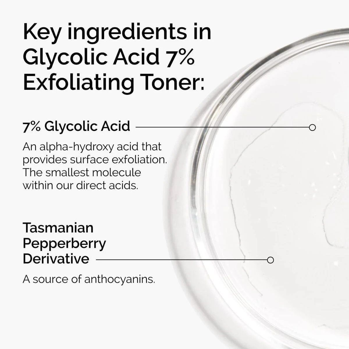 Aqua (Water), Glycolic Acid, Rosa Damascena Flower Water, Centaurea Cyanus Flower Water, Aloe Barbadensis Leaf Water, Propanediol, Glycerin, Triethanolamine, Aminomethyl Propanol, Panax Ginseng Root Extract, Tasmannia Lanceolata Fruit/Leaf Extract, Aspartic Acid, Alanine, Glycine, Serine, Valine, Isoleucine, Proline, Threonine, Histidine, Phenylalanine, Glutamic Acid, Arginine, PCA, Sodium PCA, Sodium Lactate, Fructose, Glucose, Sucrose, Urea, Hexyl Nicotinate, Dextrin, Citric Acid, Polysorbate 20, Gellan Gum, Trisodium Ethylenediamine Disuccinate, Sodium Chloride, Hexylene Glycol, Potassium Sorbate, Sodium Benzoate, 1,2-Hexanediol, Caprylyl Glycol.Innovative skincare brand known for clinical formulations with integrity.Apply once daily, ideally in the evening, using a cotton pad or fingers.Do not use with other retinoid products. Use sun protection during the day. If irritation occurs, rinse off, cease use, and consult a physician.