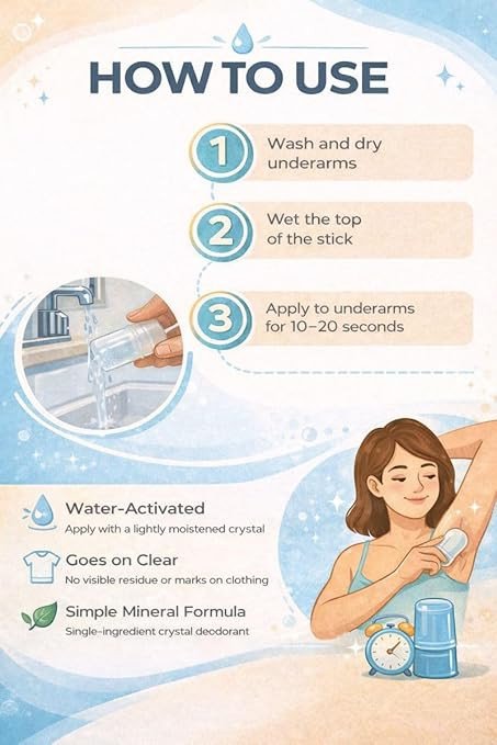 Thai Crystal Deodorant Stick is made from crystallized natural mineral salts, offering a chemical-free solution to neutralize body odors and inhibit bacterial formation. Perfect for those seeking a natural, hypoallergenic deodorant option. Key Features No Aluminum Chlorohydrate, Zirconium, Parabens, Chemicals, or Propyls Hypoallergenic Non-Staining 24-Hour Protection Completely Natural Natural mineral salt.Thai Crystal offers natural deodorants free from chemicals and parabens, known for hypoallergenic and non-staining properties.Wet the crystal stone and apply generously to the underarm area; dries immediately. Also effective for foot odor.These statements have not been evaluated by the FDA. This product is not intended to diagnose, treat, cure, or prevent any disease.