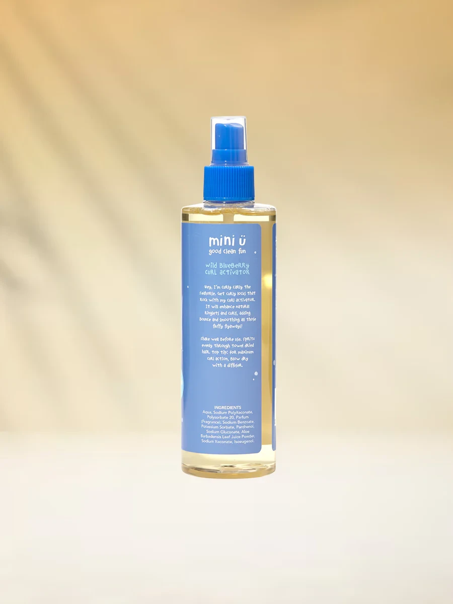 Mini U Curl Activator is a gentle spray designed for kids, enhancing curls with vitamin B5 and aloe vera. Ideal for curly hair, it smooths flyaways and adds bounce. Features Enhances natural curls and ringlets Adds bounce and smooths flyaways Contains Vitamin B5 for hair health 98% natural formula Free from gluten, soy, dairy, and microplastics Suitable for vegans Lightly fragranced with blueberry scent Aqua, Sodium Polyitaconate, Polysorbate 20, Parfum (Fragrance), Sodium Benzoate, Potassium Sorbate, Panthenol, Sodium Gluconate, Aloe Barbadensis Leaf Juice Powder, Sodium Itaconate, Isoeugenol.Mini U Curl Activator is a gentle spray designed for kids, enhancing curls with vitamin B5 and aloe vera. Ideal for curly hair, it smooths flyaways and adds bounce.Shake Well Before Use. Spritz Evenly Through Towel Dried Hair. Blow Dry With A Diffuser For Maximum Curl Action.For External Use Only. Avoid Contact With Eyes. If Product Gets In The Eyes, Rinse Thoroughly With Water.