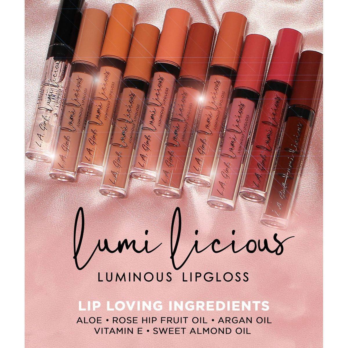 L.A. Girl Lumilicious Lip Gloss offers high shine and pigmented color with a non-sticky formula. Infused with aloe, rose hip fruit oil, argan oil, vitamin E, and sweet almond oil, it hydrates and softens lips. Perfect for a luminous finish. Key Features High-shine luminizing lip gloss Hydrates lips with aloe and oils Non-sticky, long-lasting finish Easy-to-use doe-foot applicator Vanilla scented Cruelty-free formulation Aloe, Rose Hip Fruit Oil, Argan Oil, Vitamin E, Sweet Almond Oil.LA Girl: Known for vibrant, affordable cosmetics with a cruelty-free promise.Use the applicator wand to apply from the center of the lips and sweep across the full length of the lips.For external use only.