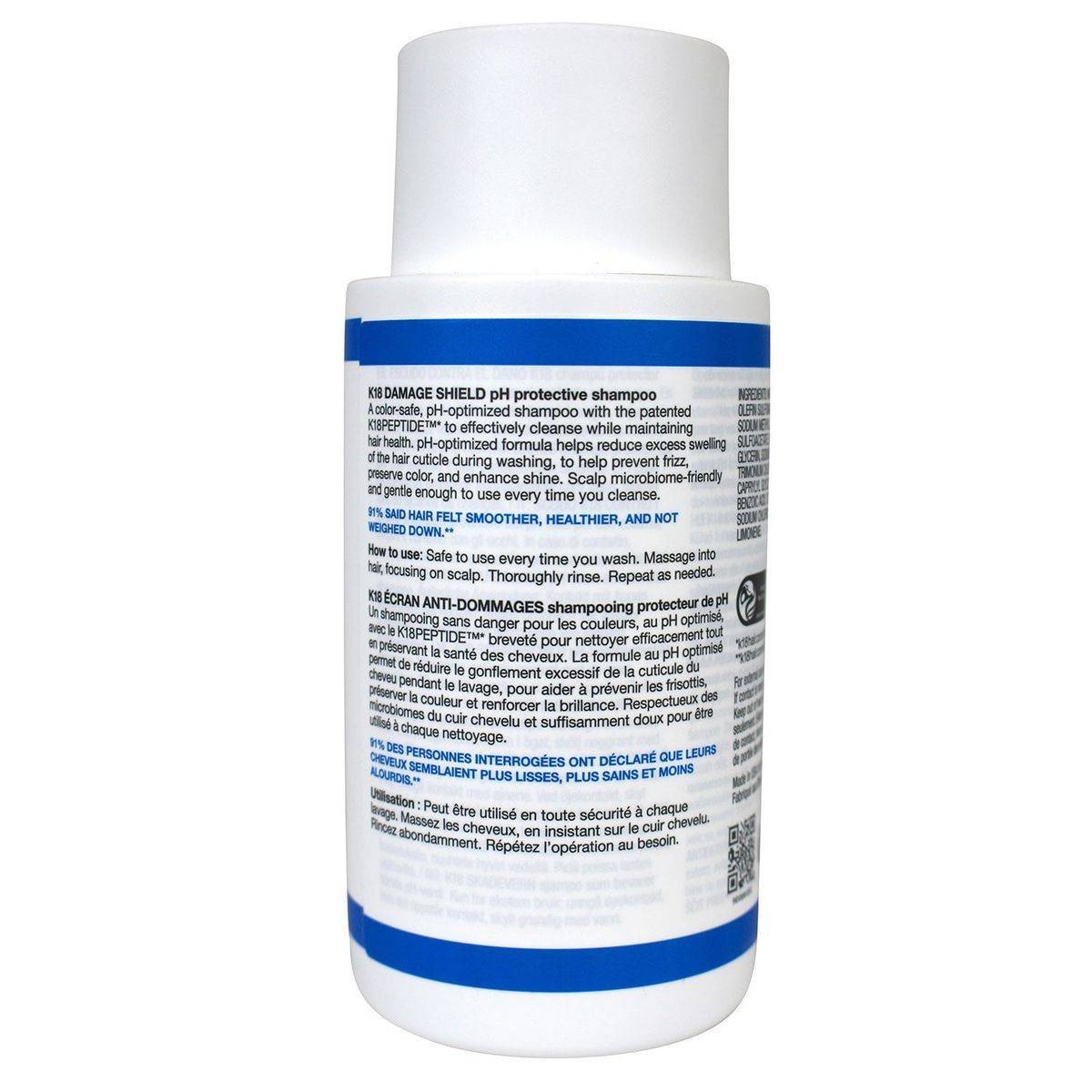 K18 Damage Shield pH Protective Shampoo is a color-safe, pH-optimized cleanser designed to maintain hair health, reduce frizz, and protect color. Formulated with K18PEPTIDE™ for molecular repair, it is gentle enough for regular use and suitable for all hair types. Key Features Color-safe, pH-optimized formula Reduces frizz and tangles Protects hair color Gentle enough for regular use Maintains hair health and shine Vegan and cruelty-free Microbiome-friendly Contains K18PEPTIDE™ for molecular repair Water (Aqua) (Eau), Sodium C14-16 Olefin Sulfonate, Cocamidopropyl Betaine, Sodium Methyl 2-Sulfolaurate, Sodium Lauryl Sulfoacetate, Sh-Oligopeptide-78, Panthenol, Glycerin, Sodium Phytate, Guar Hydroxypropyltrimonium Chloride, Disodium 2-Sulfolaurate, Caprylyl Glycol, Capryl Hydroxamic Acid, Benzoic Acid, Citric Acid, Sodium Hydroxide, Sodium Chloride, Fragrance (Parfum), Limonene.K18 is known for its innovative biomimetic hair science, offering advanced solutions for hair repair and protection.Massage into hair, focusing on scalp. Thoroughly rinse. Repeat as needed.For external use only. Avoid contact with eyes. If contact is made, rinse thoroughly with water. Keep out of reach of children.