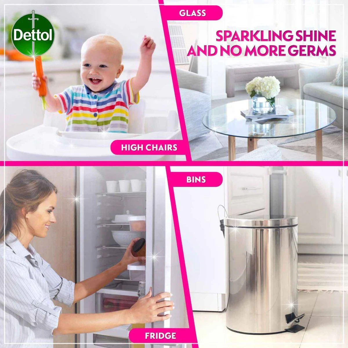 Dettol Healthy Kitchen Power Cleaner Rose 500ml is an all-purpose cleaner with a fresh rose fragrance. It effectively removes tough stains and kills 99.9% of germs, leaving surfaces sparkling clean. b Key Features Kills 99.9% of germs 100% tough stain removal Fresh & long-lasting rose fragrance Brightens surfaces Easy-to-use spray bottle All-purpose cleaner Anti-bacterial formula Active Ingredients: 5% Edta Salts, Disinfectant. Other ingredients: Perfume, Linalool, Hexyl Cinnamal, Citronellol, Benzyl Salicylate, Rose fragrance.Dettol is a well-known global brand. This is a heavy-duty cleaner specifically designed for kitchen surfaces.Turn nozzle to 'ON'. Spray onto the surface. Leave for 5 minutes to disinfect. Wipe clean with a cloth or sponge.Caution: Causes serious eye irritation. Keep out of reach of children. If in eyes, rinse cautiously with water for several minutes.