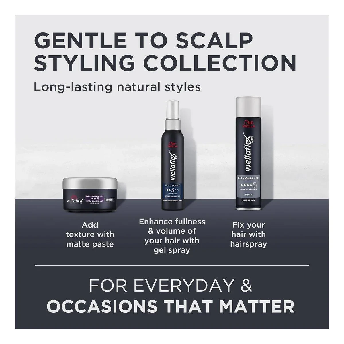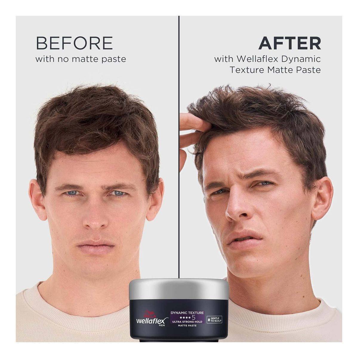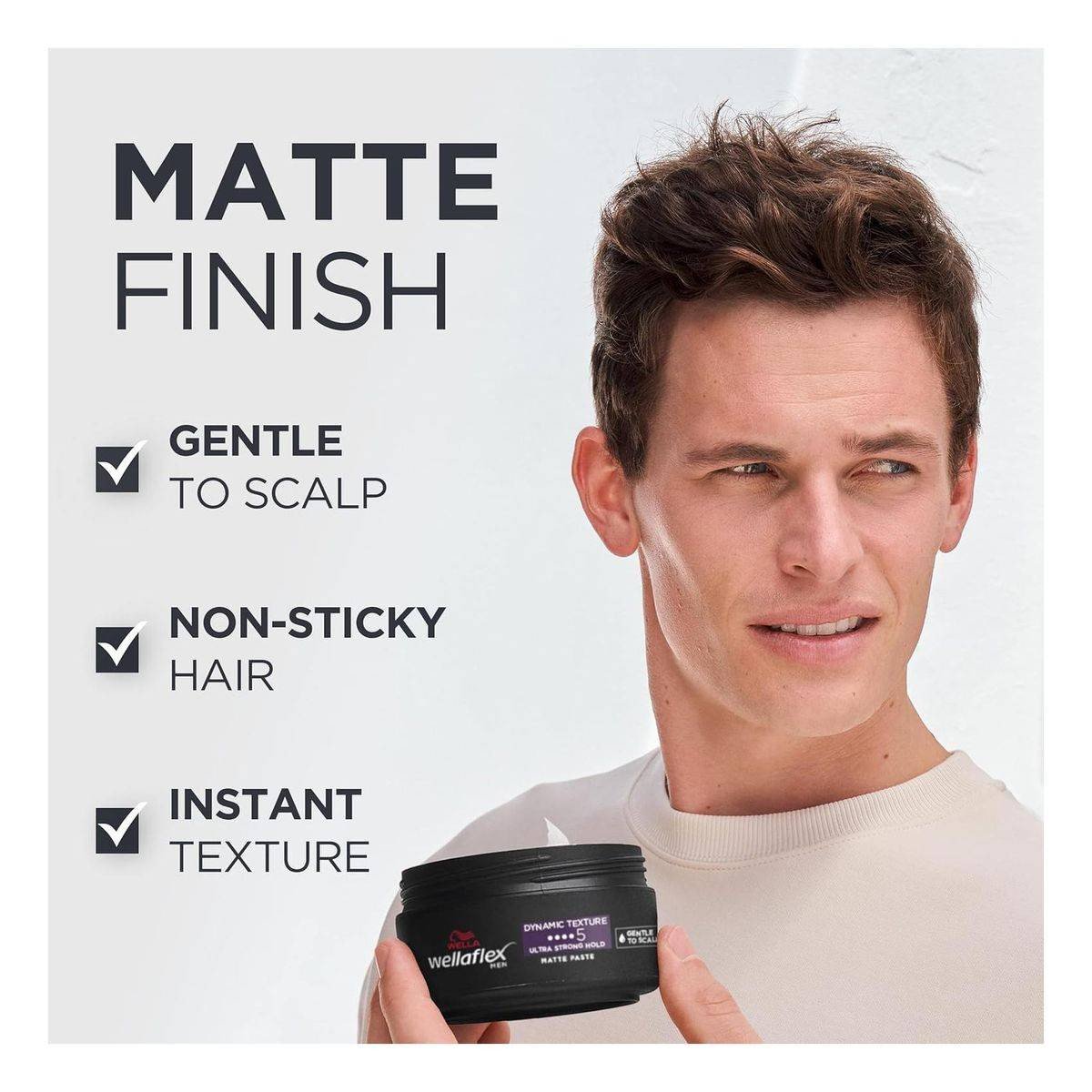 Wella Wellaflex Men Ultra Strong Hold Matte Paste provides dynamic texture and ultra strong hold for styling. Gentle to scalp and dermatologically tested. Key Features Ultra strong hold Matte finish Gentle to scalp Dynamic texture Non-sticky Dermatologically tested Recyclable jar Key Ingredients: Water, Carnauba Wax, Microcrystalline Wax, PVP/VA Copolymers (Styling Agents), Cetearyl Alcohol, Propylene Glycol, Fragrance.Wella is renowned for innovative hair care solutions, offering products that enhance style and texture.Apply To Dry Hair For Instant Texture And Hold.Gentle To Scalp.