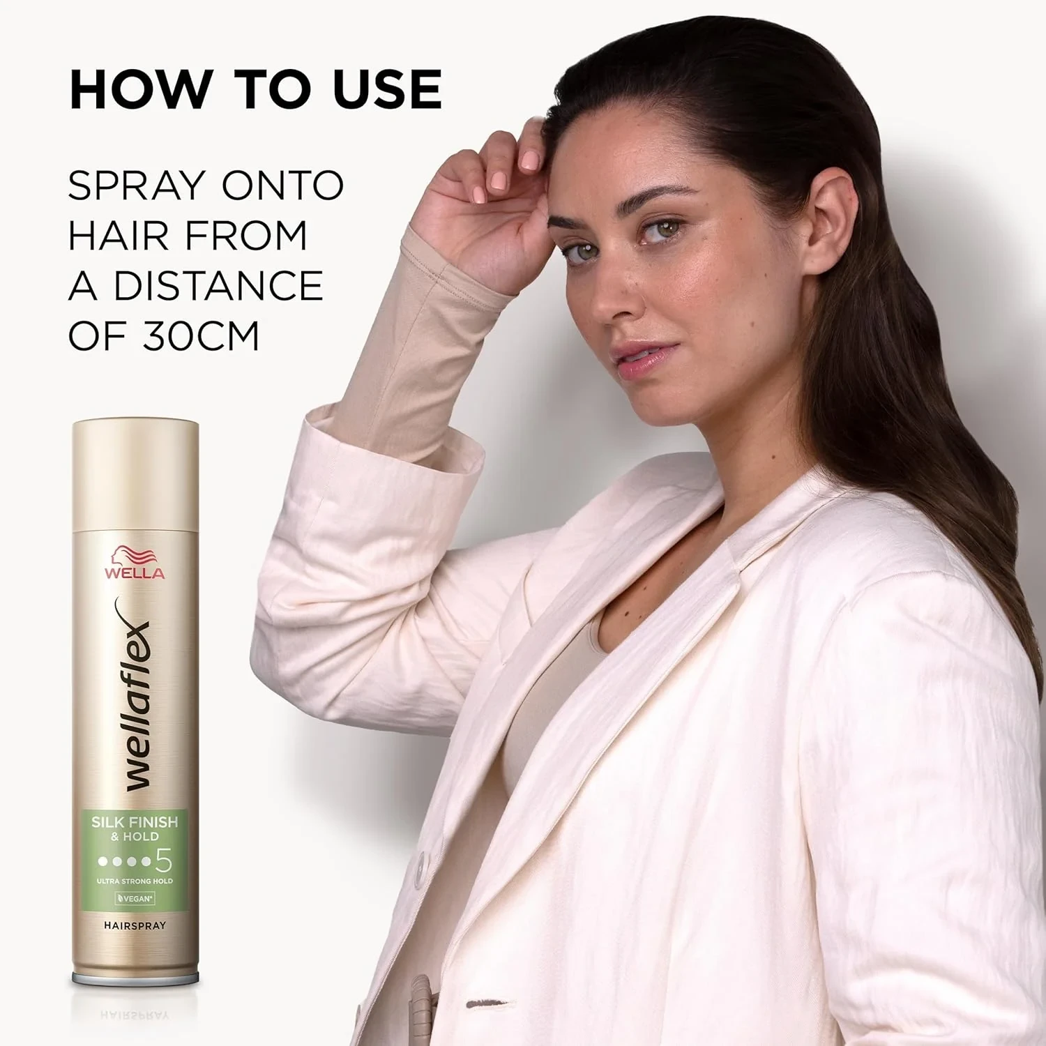 Wella Wellaflex Silk Finish & Hold Hairspray offers up to 48-hour hold with a flexible and lightweight feel. Ideal for creating natural hairstyles, it is gentle on the scalp and provides ultra strong hold. Key Features Up to 48H hold Flexible & lightweight ultra strong hold Natural hair feel Gentle to scalp Key Ingredients: Alcohol Denat., Butane/Propane (Propellants), Fixing Polymers, Fragrance, Silk Extracts (for shine).Wella: Innovators in hair care, offering professional styling products for a natural look.Spray Onto Hair From A Distance Of 30 CmExtremely Flammable Aerosol. Pressurized container: Do not pierce or burn. Keep away from heat/open flames. Avoid spraying in eyes.