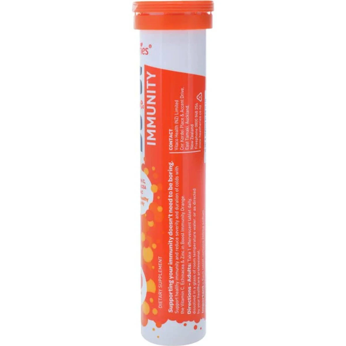 Healtheries Boost Vitamin C Orange Effervescent Tablets are designed to support immune health with Vitamin C, Zinc, and Echinacea. Aspartame-free and made in the UK, these tablets dissolve in water to create a refreshing orange-flavored drink. Ideal for daily immune support, especially during times of stress. Key Features High strength immune support Effervescent tablets Orange flavour Contains Vitamin C, Zinc, and Echinacea Aspartame-free formulation Made in the United Kingdom Vitamin C (Ascorbic Acid) 1000Mg, Zinc (As Gluconate) 7.5Mg, Herbal Extract Equiv. Dry: Echinacea Purpurea Root 238Mg, Natural Colour, Flavours, Sweeteners, Tabletting Aids, Aspartame Free.Healtheries Boost Vitamin C Orange Effervescent Tablets are designed to support immune health with Vitamin C, Zinc, and Echinacea. Aspartame-free and made in the UK, these tablets dissolve in water to create a refreshing orange-flavored drink. Ideal for daily immune support, especially during times of stress.Adults: Take 1 Effervescent Tablet Daily, Dissolved In A Glass Of Room Temperature Water, Or As Directed By Your Healthcare Professional.Keep Out Of Reach Of Children. Do Not Use If Cap Ring Is Broken Or Missing.