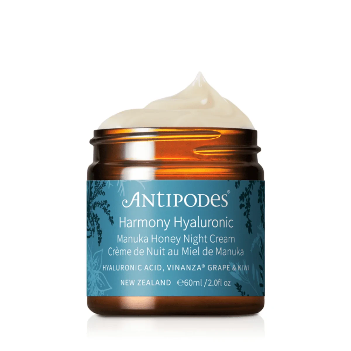 Aqua (Water), Persea Gratissima (Avocado Pear) Oil, Cetearyl Olivate, Propanediol, Cetearyl Alcohol, Olea Europaea (Olive) Fruit Oil, Sorbitan Olivate, Parfum, Betaine, Glyceryl Stearate Citrate, Palmitic Acid, Hydrogenated Vegetable Oil, Mel (Nz Manuka Honey), Vitis Vinifera (Grape) Seed Extract, Actinidia Deliciosa (Kiwi) Fruit Extract, Sodium Hyaluronate (Hyaluronic Acid), Paeonia Suffruticosa (Peony) Root Extract, Actinidia Chinensis (Kiwi) Seed Oil, Cyathea Cumingii Leaf (Mamaku Black Fern) Extract, Saxifraga Sarmentosa (Strawberry Begonia) Extract, Salvia Hispanica (Chia) Seed Oil, Rosmarinus Officinalis (Rosemary) Leaf Extract, Scutellaria Baicalensis (Skullcap) Root Extract, Heliathus Annuus (Sunflower) Seed Oil, Isoamyl Laurate, Glycerin, Bisabolol, Xanthan Gum, Tapioca Starch, Glyceryl Caprylate, Gluconolactone, Stearic Acid, Carrageenan, Galactoarabinan, Sodium Benzoate, Potassium Sorbate, Glutathione, Arbutin, Citric Acid, Glyceryl Stearate, Cinnamic Acid, Levulinic Acid, Caprylyl Glycol, Sodium Levulinate, Lauric Acid, Myristic Acid, Calcium Gluconate, Sodium Citrate, Sodium Phytate, Sodium Sulfite, Sodium Hydroxide, Aminopropyl Ascorbyl Phosphate, Benzyl Alcohol, Acetyl Hexapeptide-8, Alcohol, Butylene Glycol, Acetyl Tyrosine, Dehydroacetic Acid, Phenoxyethanol, Linalool, Benzyl Benzoate.Antipodes: Pioneers in natural skincare, renowned for their eco-friendly and scientifically validated beauty products.Apply To Cleansed Skin In The Evening. Massage A Generous Amount Into Face, Neck, And Decollete Using Upward Movements.For external use only. Discontinue use if irritation occurs. Apply to clean, dry skin.