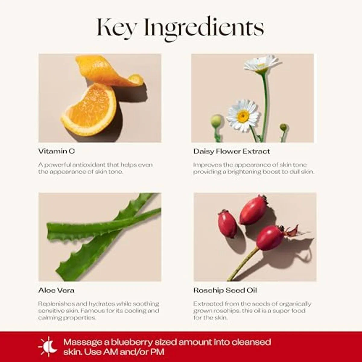 Brighten and hydrate with vitamin C, rosehip, and daisy