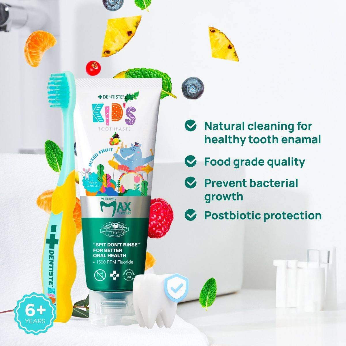 This fun and fruity toothpaste is specially designed for children aged 6 years and above. It contains 14 natural therapeutic extracts and 1500 ppm fluoride for cavity protection. SLS-free and antibacterial, it fights bad breath and keeps the mouth fresh. Key Features