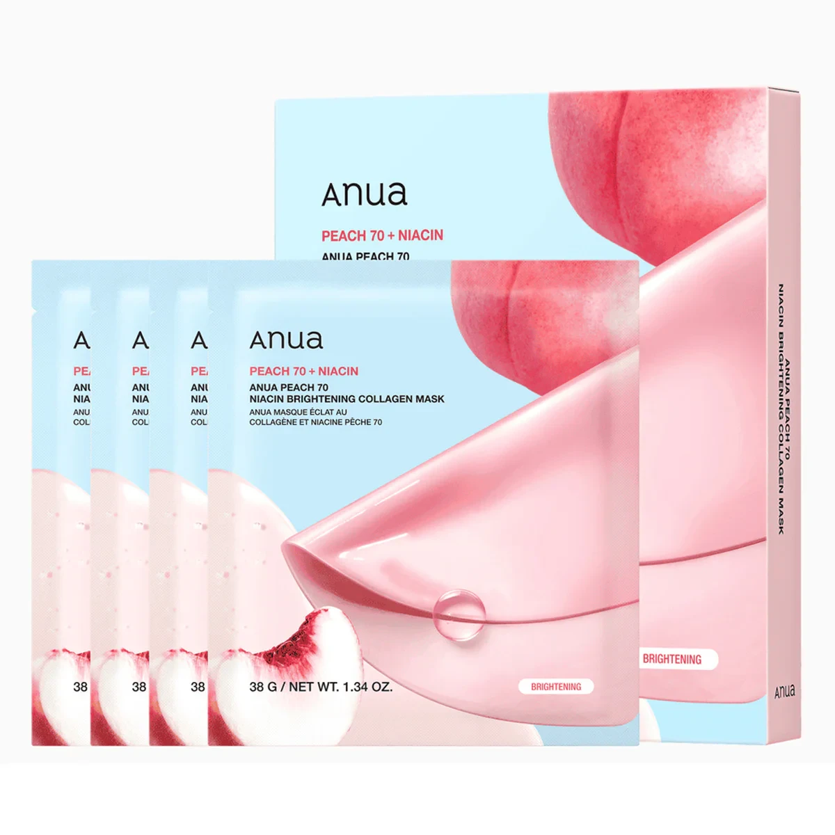 Anua Face Mask Peach 70 Niacin Brightening Collagen 38g x 4 Pieces