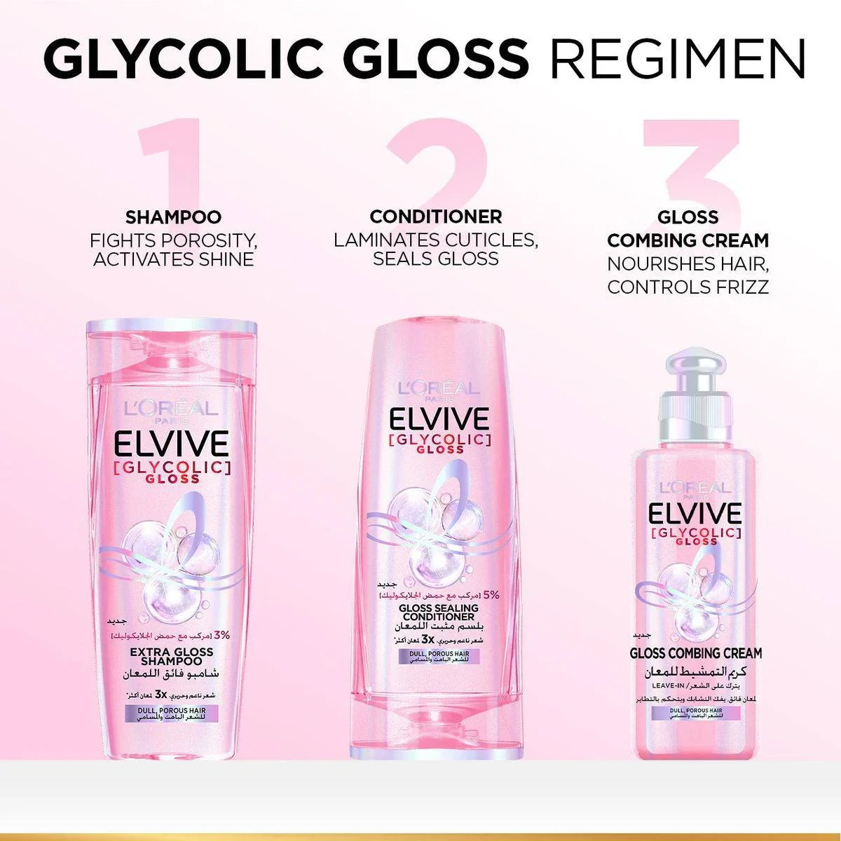 L'Oreal Paris Elvive Glycolic Gloss Leave-In is designed for dull, porous hair. Enriched with glycolic acid, it seals cuticles for a mirror-like gloss and controls frizz, leaving hair super shiny and healthier. Key Features Fights porosity, activates shine Seals gloss, laminates cuticles Nourishes hair, controls frizz Leaves hair super shiny Leaves hair healthier For dull, porous hair 2% gloss complex with glycolic acid For long-lasting mirror-like gloss Not SpecifiedL'Oreal Paris: Innovators in beauty and personal care, renowned for advanced haircare solutions.Apply to damp hair, leave in, and style as desired.