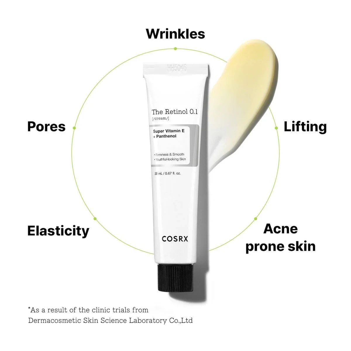 COSRX The Retinol 0.1 Cream is designed for first-time retinol users to combat early signs of aging. It contains pure retinol, panthenol, and super vitamin E to reduce wrinkles, improve elasticity, and moisturize the skin. Ideal for sensitive skin, it provides a gentle introduction to retinol with visible results. Key Features Decreases wrinkles and fine lines Improves skin's hydration and elasticity Activates skin cells Reduces visible signs of aging and skin damage Contains pure retinol (Vitamin A) Includes Super Vitamin E and Panthenol Fragrance-free and alcohol-free Suitable for first-time retinol users Water, Caprylic/Capric Triglyceride, Propanediol, Glycerin, Tocopheryl Acetate, Cetearyl Alcohol, Trehalose, Panthenol, Butyrospermum Parkii (Shea) Butter, Glycine Soja (Soybean) Oil, Ammonium Acryloyldimethyltaurate/Vp Copolymer, Dimethicone, Glyceryl Polymethacrylate, Helianthus Annuus (Sunflower) Seed Oil, Polyglyceryl 10 Stearate, Hydrogenated Lecithin, Hydroxyethyl Acrylate/Sodium Acryloyldimethyl Taurate Copolymer, Carbomer, Tromethamine, Glyceryl Stearate, Polysilicone 11, Sodium Sulfite, Tocopherol, Daucus Carota Sativa (Carrot) Root Extract, Retinol(0.1%), Allantoin, Glyceryl Caprylate, Oryza Sativa (Rice) Bran Wax, Tocotrienols, Stearic Acid, Polyglyceryl 3 Methylglucose Distearate, Palmitic Acid, Disodium Edta, Ethylhexylglycerin, Adenosine, Sorbitan Isostearate, Elaeis Guineensis (Palm) Oil, Bht, Beta Carotene, Myristic Acid, Lauric Acid, Ascorbic Acid, Limnanthes Alba (Meadowfoam) Seed Oil, 3 O Ethyl Ascorbic Acid, Glutathione, Sodium Hyaluronate, 1,2 Hexanediol, Hydrolyzed Hyaluronic Acid, Sodium Hyaluronate Crosspolymer, Hyaluronic Acid, Sodium Acetylated Hyaluronate.Leading Korean skincare brand known for innovative, effective, and affordable products.Apply a small amount with your ring finger over the face and neck, focusing on areas with wrinkle concerns. Use three times per week initially, then gradually increase.Caution Is Advised As Retinol Can Cause Irritation, Especially Around The Eyes And Mouth. It Is Recommended To Avoid Retinoid Products When Pregnant Or Breastfeeding.