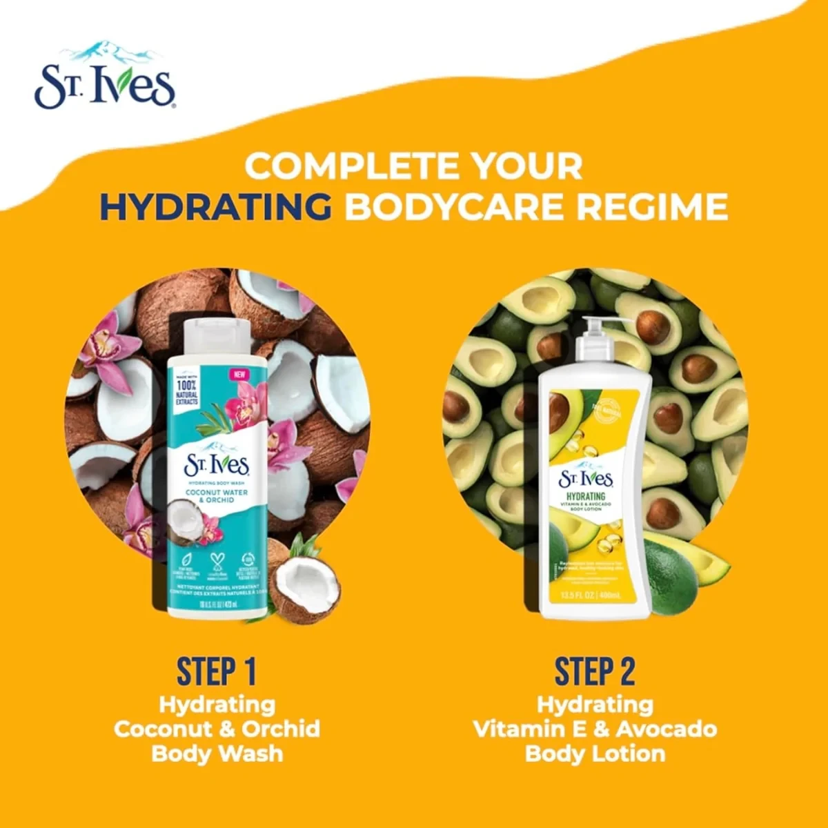 For soft, sweet-smelling skin, lather up with St. Ives Hydrating Coconut and Orchid Body Wash. This body wash is made with 100% natural coconut milk and orchid flower extracts known to soothe your senses. Our Coconut and Orchid Hand and Body Wash helps pamper with a rich, creamy lather sure to make any spa green with envy. Send your senses on a trip to the exotic with the intoxicating scents of orchid flowers and coconut milk. We're superfans of everything nature, that's why our products are made with milky coconut or sweet-smelling orchids. Coconut milk is irresistible. Our extract comes from coconuts harvested from tall Caribbean palm trees. The coconut is cracked open and the milk is extracted from the coconut flesh by a gentle water-soaking process. St. Ives Coconut & Orchid Body Wash is dermatologist-tested, paraben free, and does not contain animal-derived ingredients. Water, Sodium Laureth Sulfate, Cocamidopropyl Betaine, Sodium Chloride, Cocos Nucifera (Coconut) Water, Orchid Extract, Fragrance, Citric Acid, Disodium EDTA, PPG-9.St. Ives (owned by Unilever) is a popular US skincare brand. This body wash features a fresh, natural scent.Pour onto a wet loofah or washcloth. Lather over the body and rinse off.For external use only. Avoid contact with eyes. If contact occurs, rinse well.