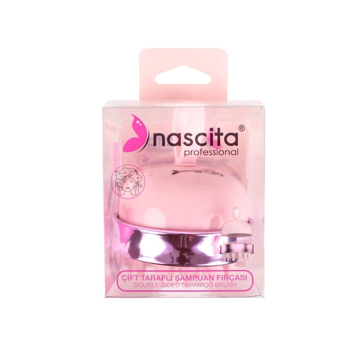 فرشاة شامبو مزدوجة 60 من ناشيتا، جانب للتدليك وآخر للتنظيف، مقبض مريح وغطاء للحفظ.