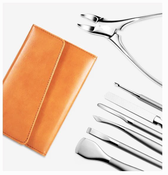 طقم العناية بالقدمين يعمل على إزالة الجلد القاسي حول الأظافر ويترك القدم ناعمة.