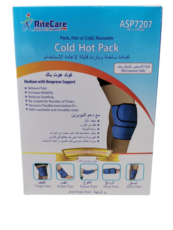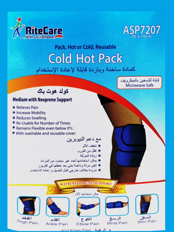 كمادة متعددة الاستخدامات للركبة والكاحل والكوع، تساعد في تخفيف الألم والالتهابات. قابلة لإعادة الاستخدام ويمكن استخدامها باردة أو ساخنة.