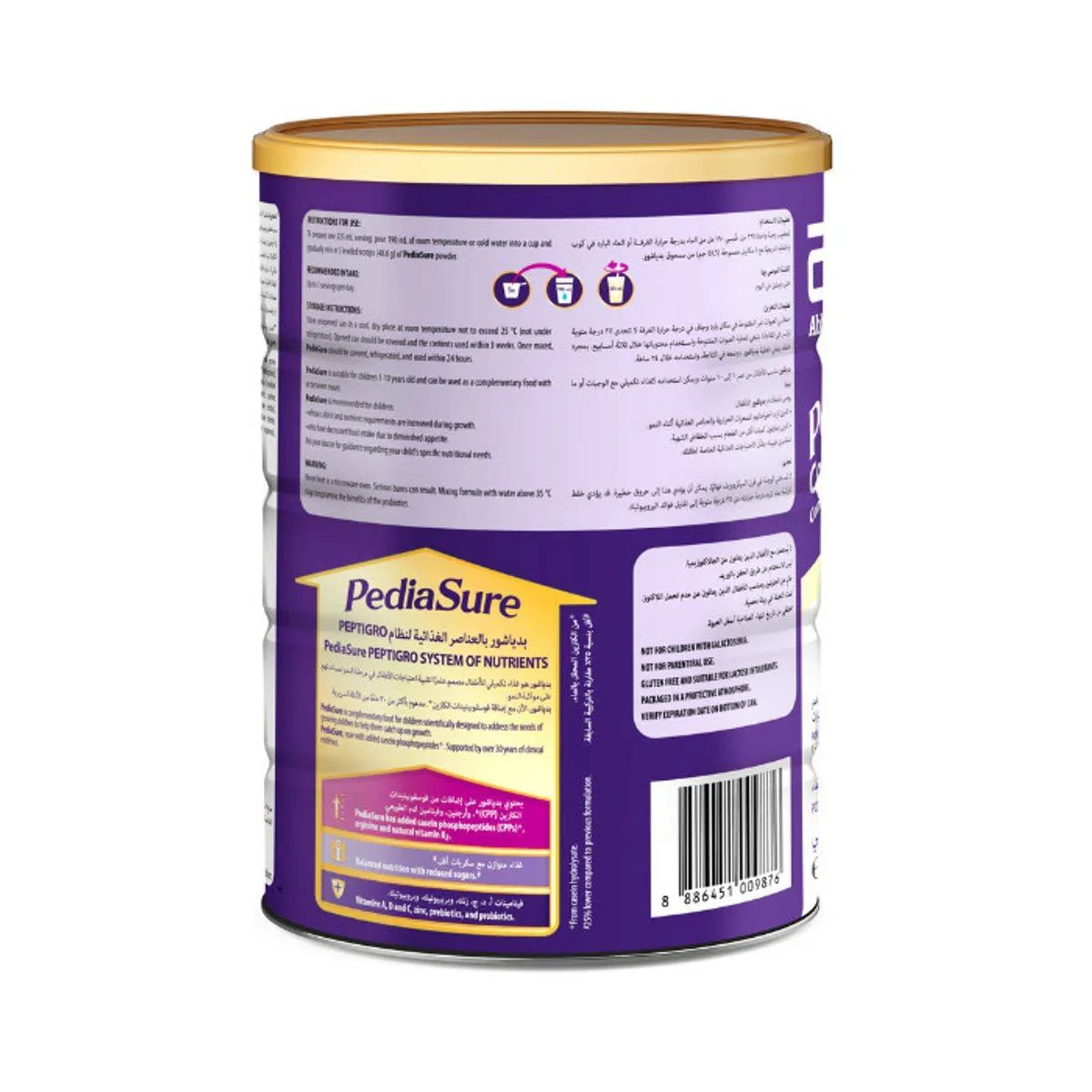 Corn Syrup, Sugar, Blend of Vegetable Oils, Milk Protein Concentrate, Soy Protein Isolate, Casein Phosphopeptides, Arginine, Natural Vitamin K2, DHA, Omega-3, Omega-6, Vitamins (A, C, D, E), Minerals (Calcium, Potassium, Zinc, Iron), Fructooligosaccharides, Carrageenan, Soy Lecithin.PediaSure: Leading child nutrition brand known for balanced nutritional supplements supporting growth and development.Mix 5 leveled scoops of powder into 190 mL of water to prepare a 225 mL serving.Store in a cool, dry place at room temperature not exceeding 25°C.