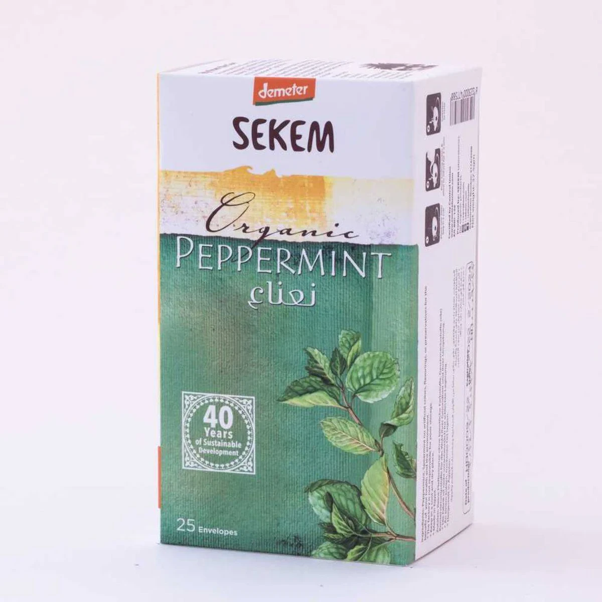 Sekem Organic Tea Peppermint offers a refreshing and soothing herbal experience. Made from organic peppermint leaves, it supports sustainable agriculture. Ideal for a calming tea break. Key Features Organic peppermint tea 25 envelopes per pack USDA organic certified Demeter certified Organic Peppermint.Renowned for organic teas and sustainable development for over 40 years.Place one tea bag in a cup. Pour boiling water over the tea bag. Steep for 3?5 minutes or to desired strength. Remove the tea bag and enjoy.Consultation: If pregnant, nursing, or taking medication, consult your healthcare practitioner before use. Not a substitute for medical treatment.