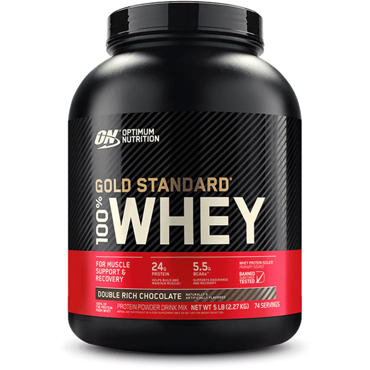 Optimum Nutrition Gold Standard 100% Whey Protein is a premium protein supplement designed to support muscle growth and recovery. It contains 24 grams of protein per serving, enriched with BCAAs and glutamine for enhanced muscle support. Ideal for use before or after workouts, or any time additional protein is needed. Features Primary Source of Protein Pure Muscle Building Protein Enriched With Ultra Pure Whey Protein Isolate Rich in BCAAs and Glutamine Contains Aminogen-digestive Enzymes for Enhanced Breakdown and Absorption Easy to Dissolve in Water or Other Beverages Includes Lactase Enzyme for Digesting Milk Sugar Protein Blend (Whey Protein Isolates, Whey Protein Concentrate, Whey Peptides), Cocoa (Processed with Alkali), Lecithin, Natural and Artificial Flavors, Salt, Creamer (Sunflower Oil, Maltodextrin, Modified Food Starch, Dipotassium Phosphate, Tricalcium Phosphate, Tocopherols), Acesulfame Potassium, Aminogen, Sucralose, Lactase.Leading sports nutrition brand known for high-quality protein supplements.Mix 1 scoop in 6-8 fl oz of cold water, milk, or other beverage. Stir, shake, or blend for 30 seconds or until dissolved.Do not use for weight reduction.