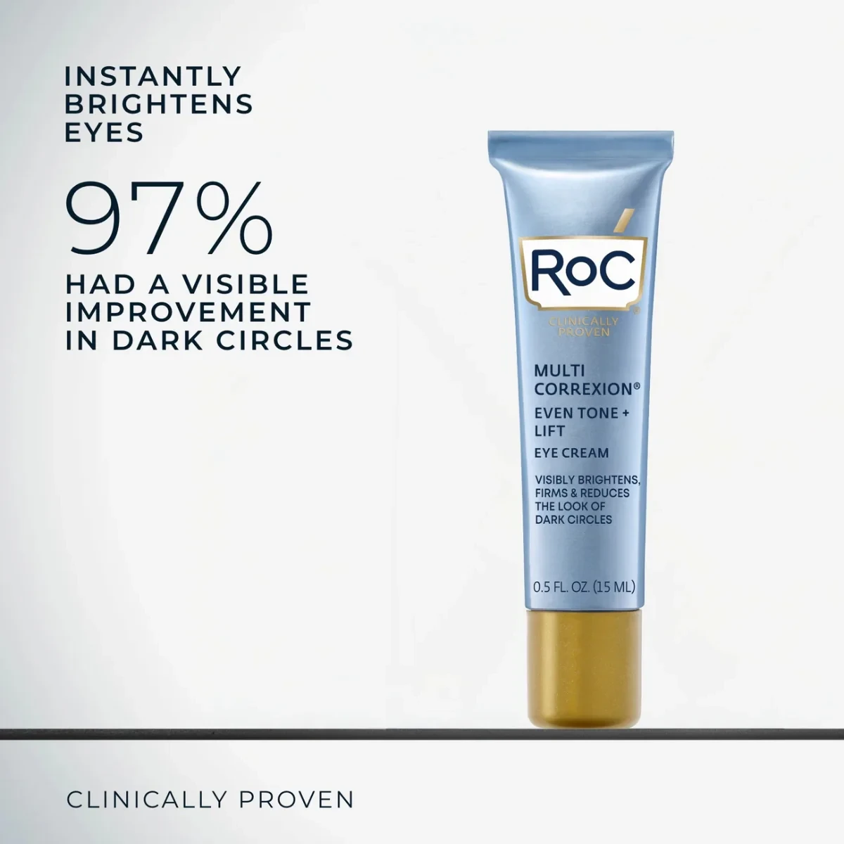 A brightening eye cream with Niacinamide to hydrate delicate skin in the eye area and visibly reduce the look of dark circles. This eye cream with Niacinamide is clinically proven to brighten your entire eye area. Designed with two powerful antioxidants – Niacinamide and RoC’s® proprietary Hexyl-R Complex™ technology – the fast-absorbing eye cream for dark circles helps target discoloration and an uneven tone while visibly improving the look of multiple signs of aging including dark circles, crow’s feet, and firmness. Clinically proven to instantly brighten the eye area. 97% saw a visible reduction in dark circles. Water/Aqua/Eau, Glycerin, Caprylic/Capric Triglyceride, Cetearyl Alcohol, Butyrospermum Parkii (Shea) Butter, Ascorbic Acid (Vitamin C), Hexylresorcinol, Adenosine, Butylene Glycol, Cyclopentasiloxane.A clinically proven skincare brand, born in a French pharmacy, with a 65+ year legacy focused on anti-aging and using derm-recommended ingredients like Retinol.Apply a small amount around the orbital bone and gently pat into skin until absorbed. Use morning and night.For external use only. Avoid direct contact with eyes. Discontinue use if irritation occurs.