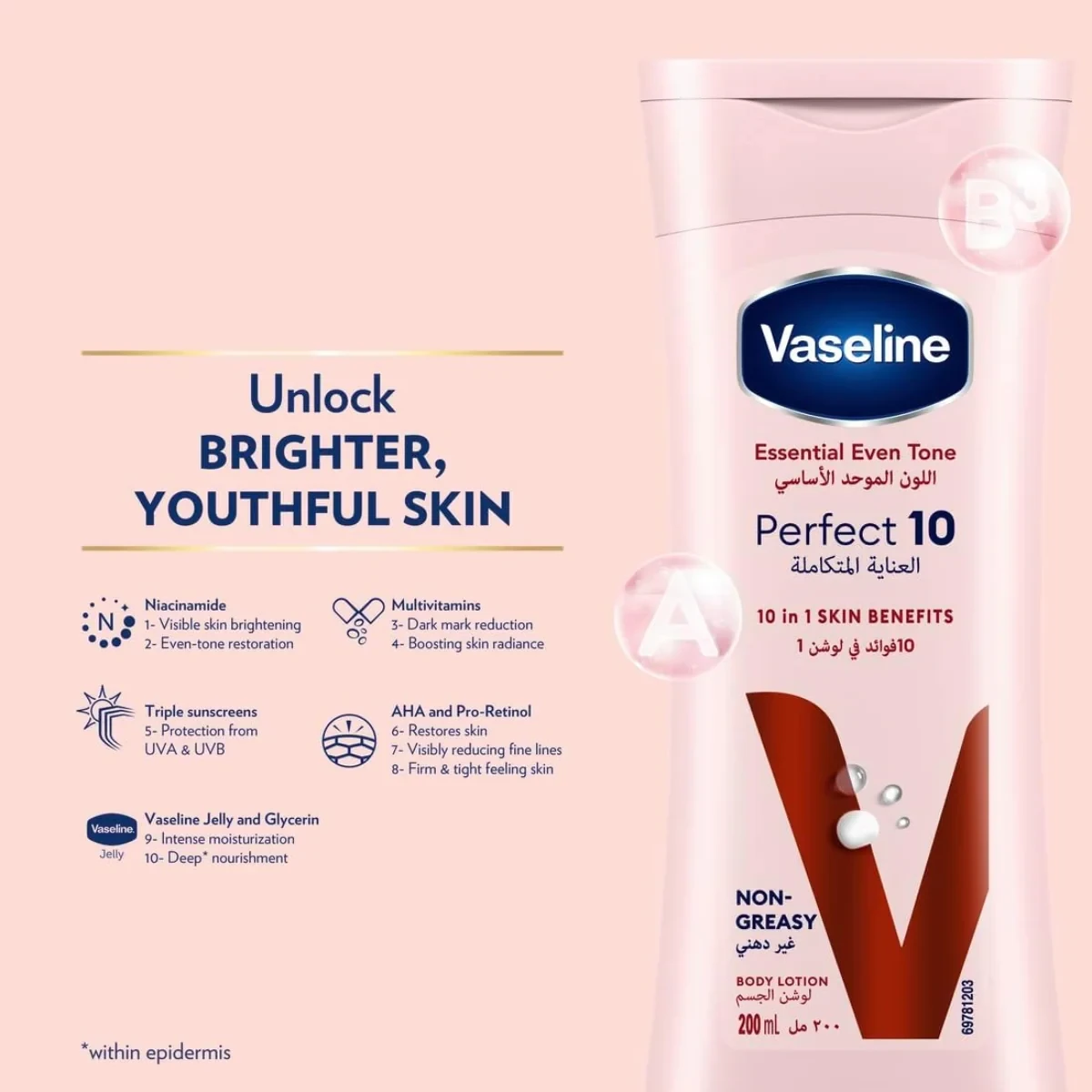 Vaseline Body Lotion Essential Even Tone Perfect 10 200ml