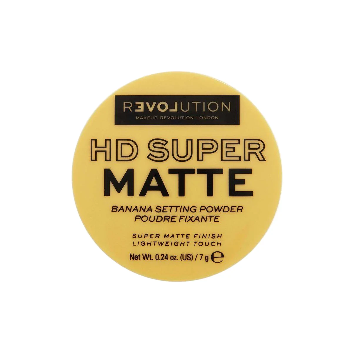 The Revolution Relove HD Super Matte Banana Powder offers a flawless matte finish, perfect for setting makeup and reducing shine. Lightweight and easy to apply, it ensures a long-lasting hold, ideal for all-day wear. Features HD super matte finish Lightweight touch Banana setting powder Suitable for all skin types Key Ingredients: Talc or Silica, Mica, Pigments (Yellow/Banana tint), Dimethicone, Magnesium Stearate.Innovative beauty brand offering affordable, high-quality makeup products.Apply with a brush or sponge over foundation to set makeup and counteract redness. Can be used for the baking technique under the eyes.For external use only. Discontinue use if irritation occurs. Avoid inhalation of powder dust.
