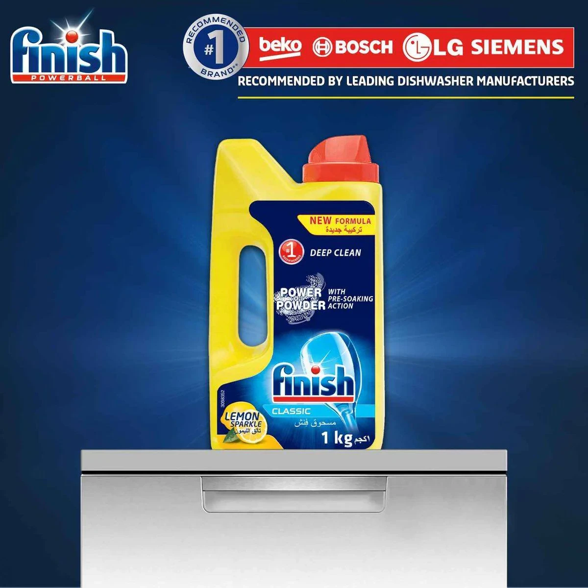 Finish Dishwasher Power Powder Lemon Sparkle is designed to provide deep cleaning and shine for your dishes. With a new formula, it effectively removes stubborn stains and leaves a refreshing lemon scent. Key Features Deep clean with pre-soaking action Lemon sparkle scent Recommended by leading dishwasher manufacturers Contains active softeners Superior German technology Oxygen-based bleaching agents, Phosphonates, Polycarboxylates, Non-ionic surfactants, Enzymes (Protease, Amylase), Perfume.Finish is a global leader in automatic dishwasher products. This is a powdered detergent.Fill the dispenser cup according to the machine manufacturer's directions (check pack for dosage guide). Close dispenser and run dishwasher.DANGER: Causes serious eye damage. Keep out of reach of children. If swallowed, call a Poison Center. If in eyes, rinse cautiously with water for several minutes.