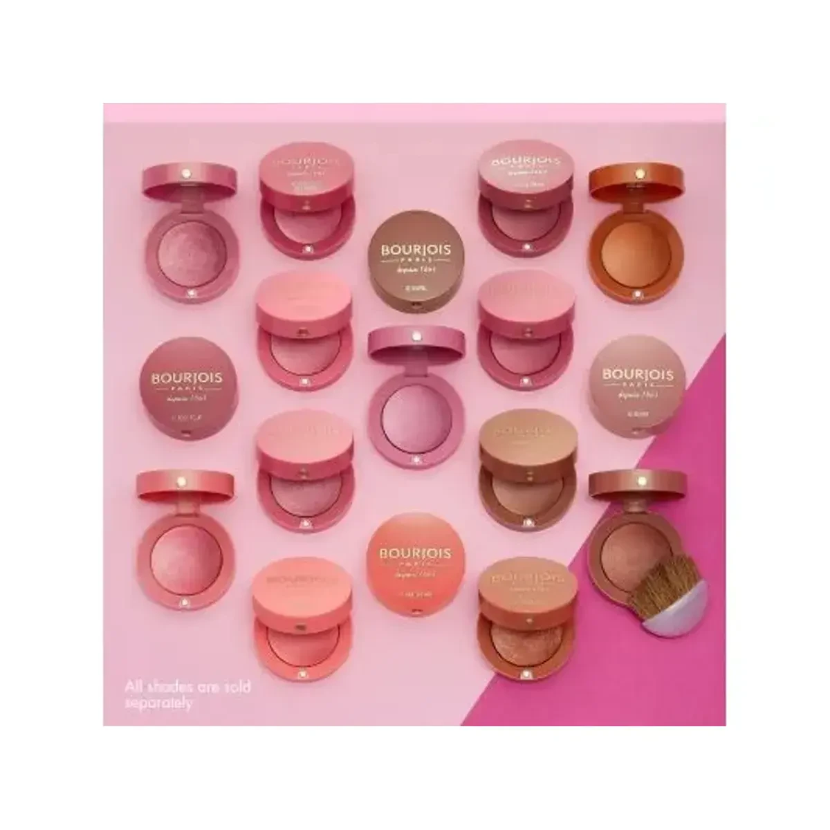 Talc, Parfum (Fragrance), Bentonite, Zea Mays (Corn) Starch, Hydroxycitronellal, Sodium Methylparaben, Cinnamyl Alcohol, Eugenol, Benzyl Salicylate, Linalool, Evernia Prunastri (Oakmoss) Extract, Citronellol, Geraniol, Amyl Cinnamal, Alpha-Isomethyl Ionone, Hexyl Cinnamal, Coumarin, Limonene, Benzyl Benzoate, Benzyl Alcohol, Farnesol, Benzyl Cinnamate [+/- (May Contain): Ci 12085 (Red 36), Ci 15850 (Red 6 Lake), Ci 15850 (Red 6), Ci 15850 (Red 7 Lake), Ci 15880 (Red 34 Lake), Ci 15985 (Yellow 6 Lake), Ci 17200 (Red 33 Lake), Ci 19140 (Yellow 5 Lake), Ci 42090 (Blue 1 Lake), Ci 45380 (Red 22 Lake), Ci 45410 (Red 28 Lake), Ci 47005 (Yellow 10 Lake), Ci 73360 (Red 30 Lake), Ci 75470 (Carmine), Ci 77007 (Ultramarines), Ci 77163 (Bismuth Oxychloride), Ci 77491, Ci 77492, Ci 77499 (Iron Oxides), Ci 77510 (Ferric Ferrocyanide), Ci 77742 (Manganese Violet), Ci 77891 (Titanium Dioxide), Ci 77019 (Mica)]Bourjois: Iconic French beauty brand known for innovative makeup products and timeless elegance.Smile And Apply The Blush On Your Cheekbones With Circular Movements. Stretch Up To The Temples.For external use only. Discontinue use if irritation occurs. Avoid inhalation of powder dust.