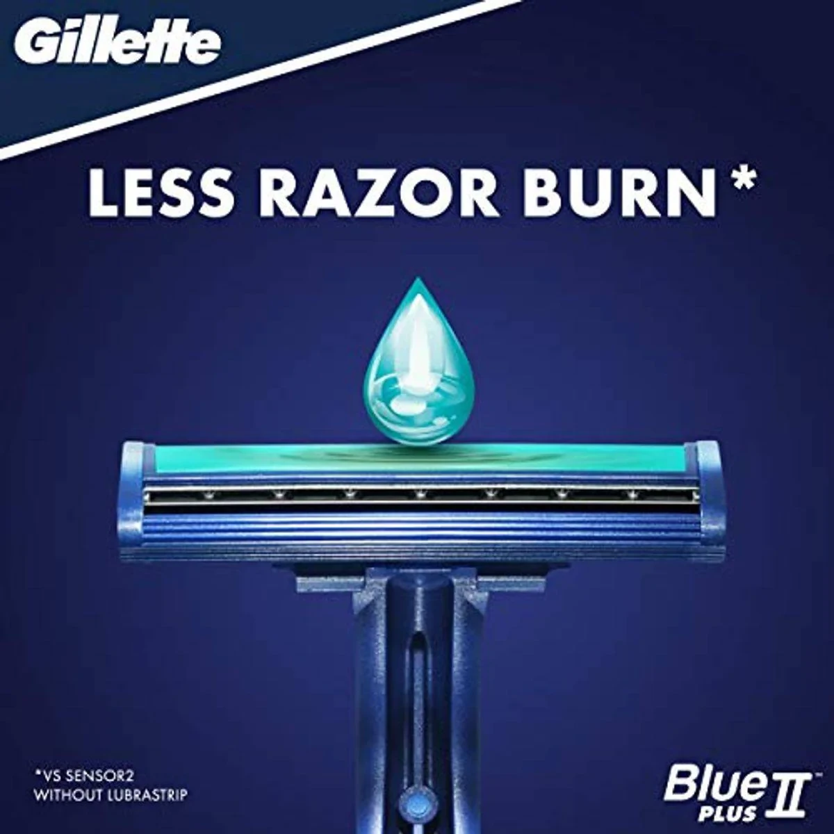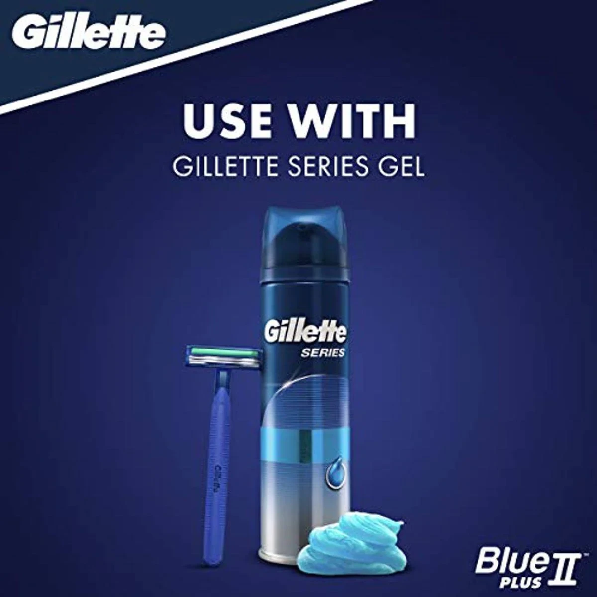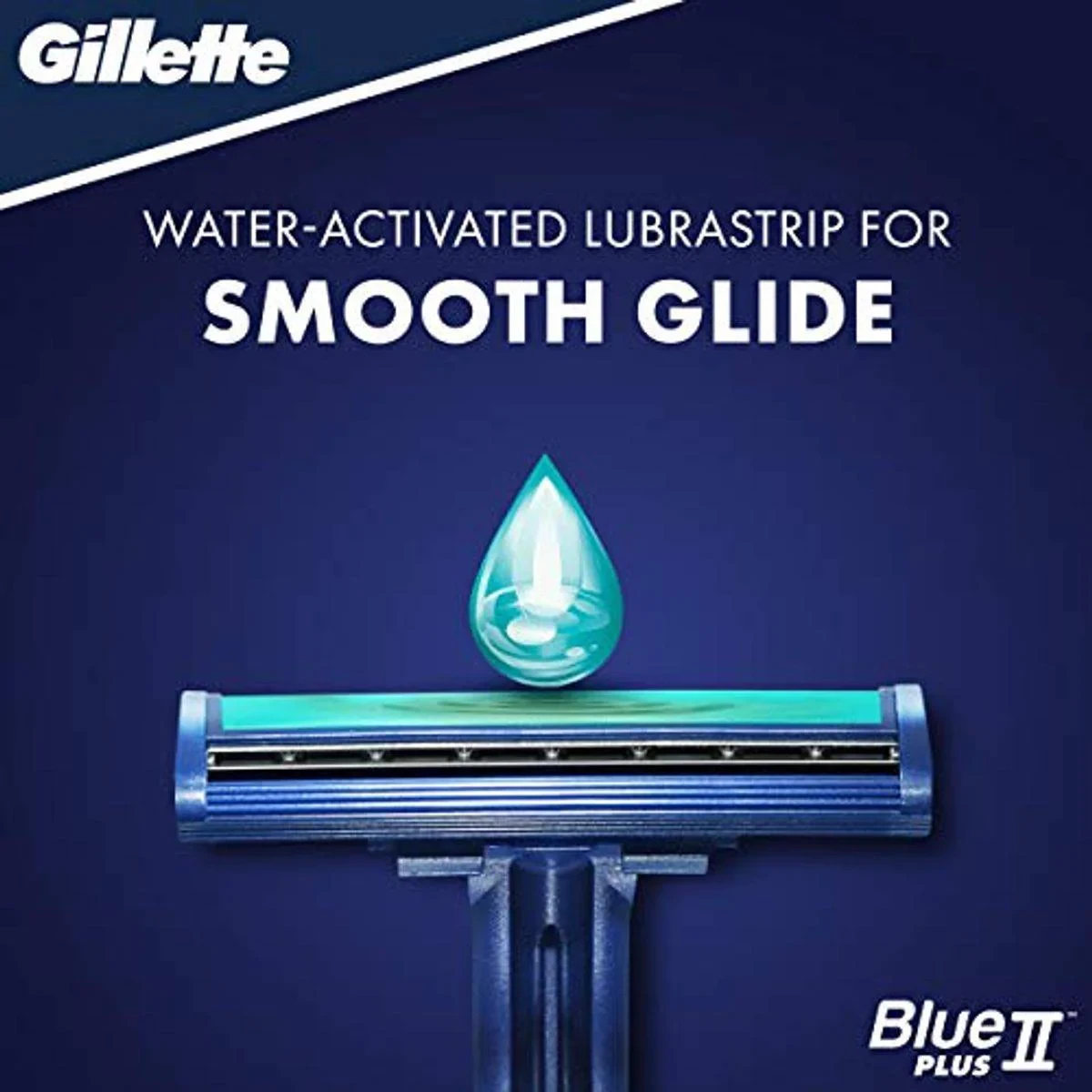 The Gillette Razor Disposable Blue II Plus offers a smooth and comfortable shave with its chromium-coated blades and water-activated lubrastrip. Ideal for sensitive skin, it features an easy grip handle for great maneuverability. Perfect for travel or everyday grooming. Features Chromium coated blades for durability Easy grip handle for maneuverability Water-activated lubrastrip for smooth glide Disposable and easy to use Two precision blades for a smooth shave Key Materials: Plastic handle; Stainless steel blades (2 blades); Lubrication strip (Plus indicates a strip with extra lubrication).Gillette: Leading brand in men's grooming, known for innovative shaving solutions and quality razors.Use With Gillette Series Gel For Best Results.Blade Warning: Handle with care. Keep out of reach of children.