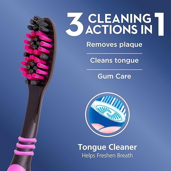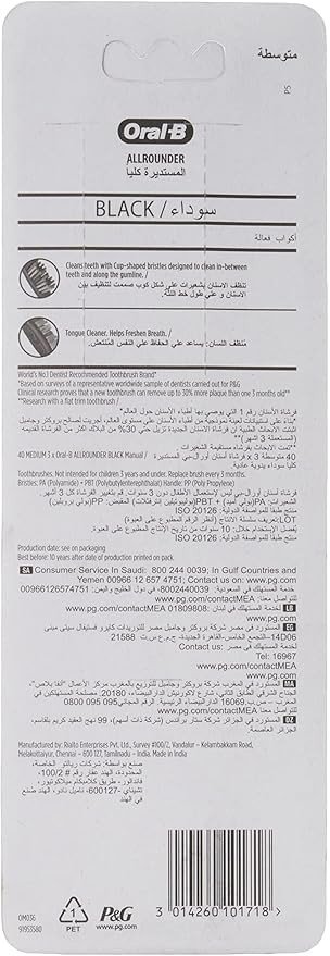 The Oral-B Surround Clean 35 Medium Toothbrush is a set of three toothbrushes in multicolour. These toothbrushes are designed with medium bristles that provide a thorough and effective cleaning. The surround clean technology ensures that all areas of the mouth are reached including the back and sides of the teeth. With its comfortable grip handle this toothbrush makes brushing a breeze. Keep your teeth and gums healthy with the Oral-B Surround Clean 35 Medium Toothbrush. Material: Nylon bristles, Plastic handle.General Info: A manual toothbrush designed to clean both sides of the tooth at once. Features: 2 bristle walls hug the tooth to clean all surfaces simultaneously. Medium bristle.Use twice daily. Replace every 3 months.