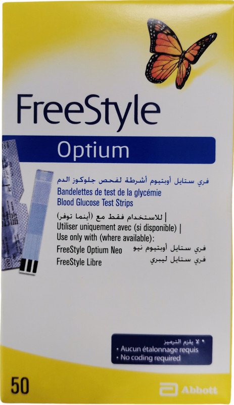 شرائط فحص سكر الدم فري ستايل اوبتيوم شرائط مغلفة بورق الألومنيوم كل على حدة للحد من التلوث والتأثر بالعوامل الخارجية.