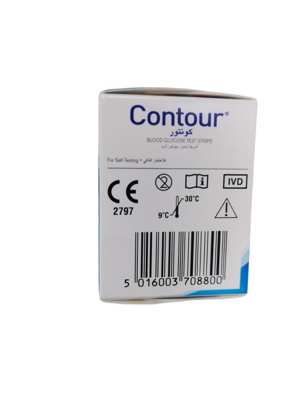 تتكون شرائط كونتور تحتوي على مادة كيميائية تفاعلية تساعد في قياس مستوى السكر في الدم.