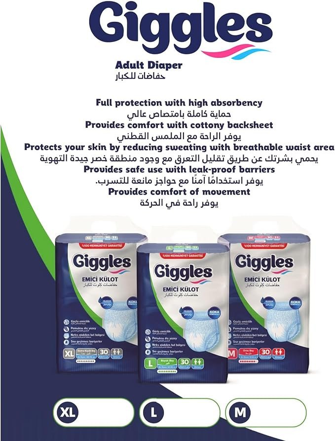Adult diapers pants medium Giggles for comfort and protection.