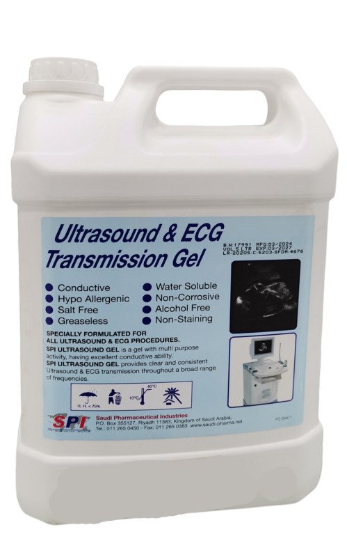 جل الترا ساوند 5 لتر مل هو تركيبة قائمة علي الماء يمكن استخدامها كجل لجهاز الموجات فوق الصوتية.